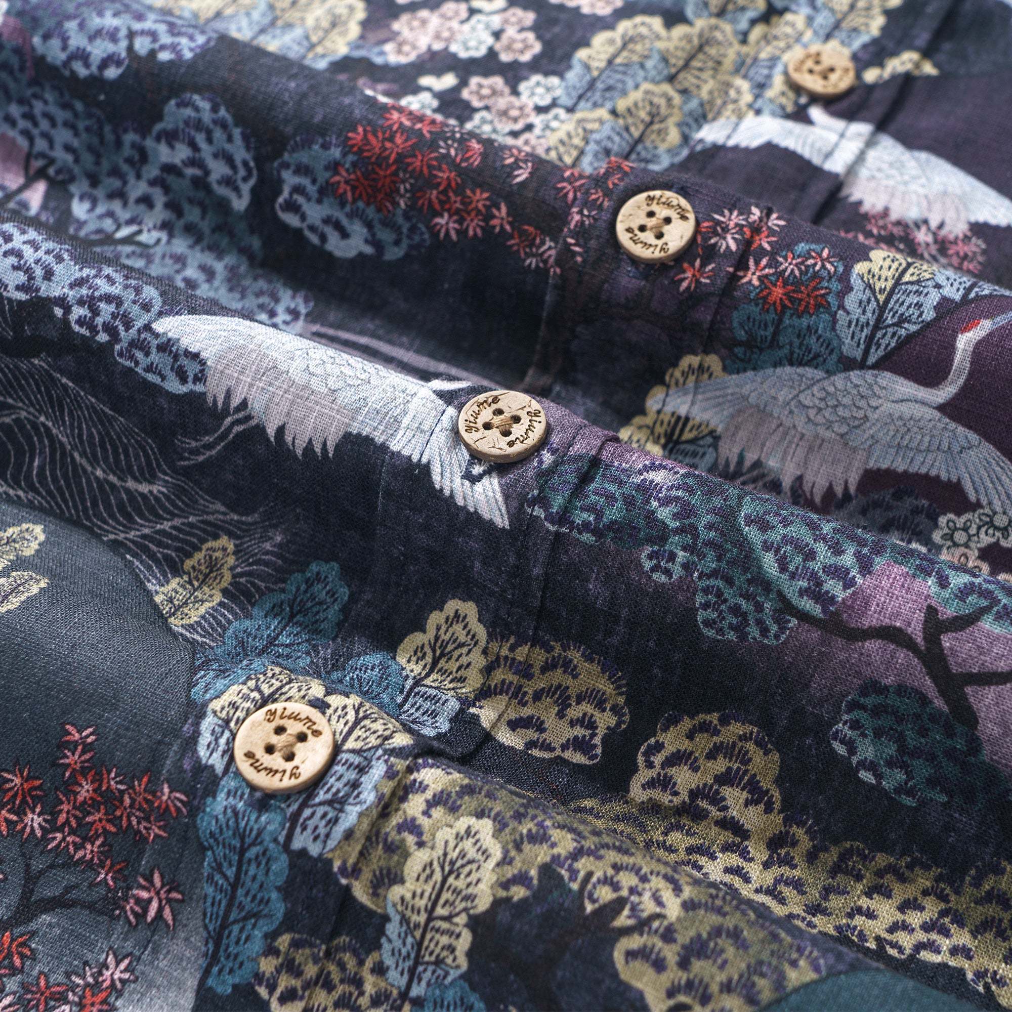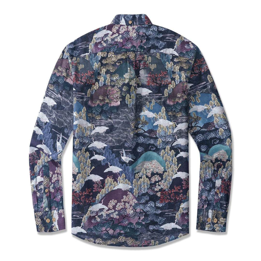 Danse des Grues Chemise à Manches Longues Aloha Hawaïenne pour Hommes en 100% Coton