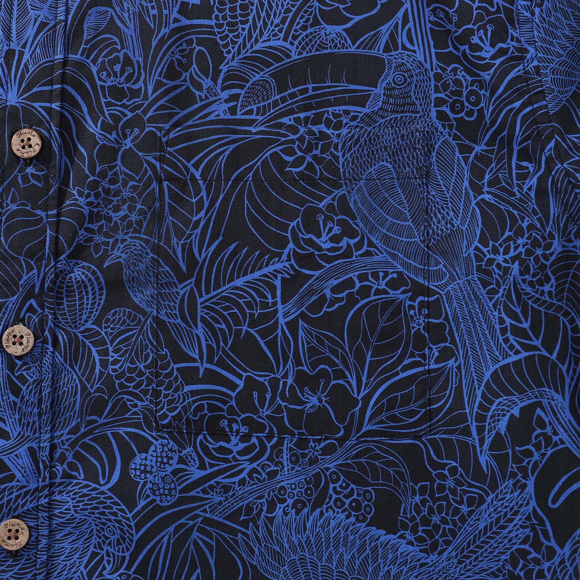 - Poche poitrine gauche et patte de boutonnage assorties à l'imprimé