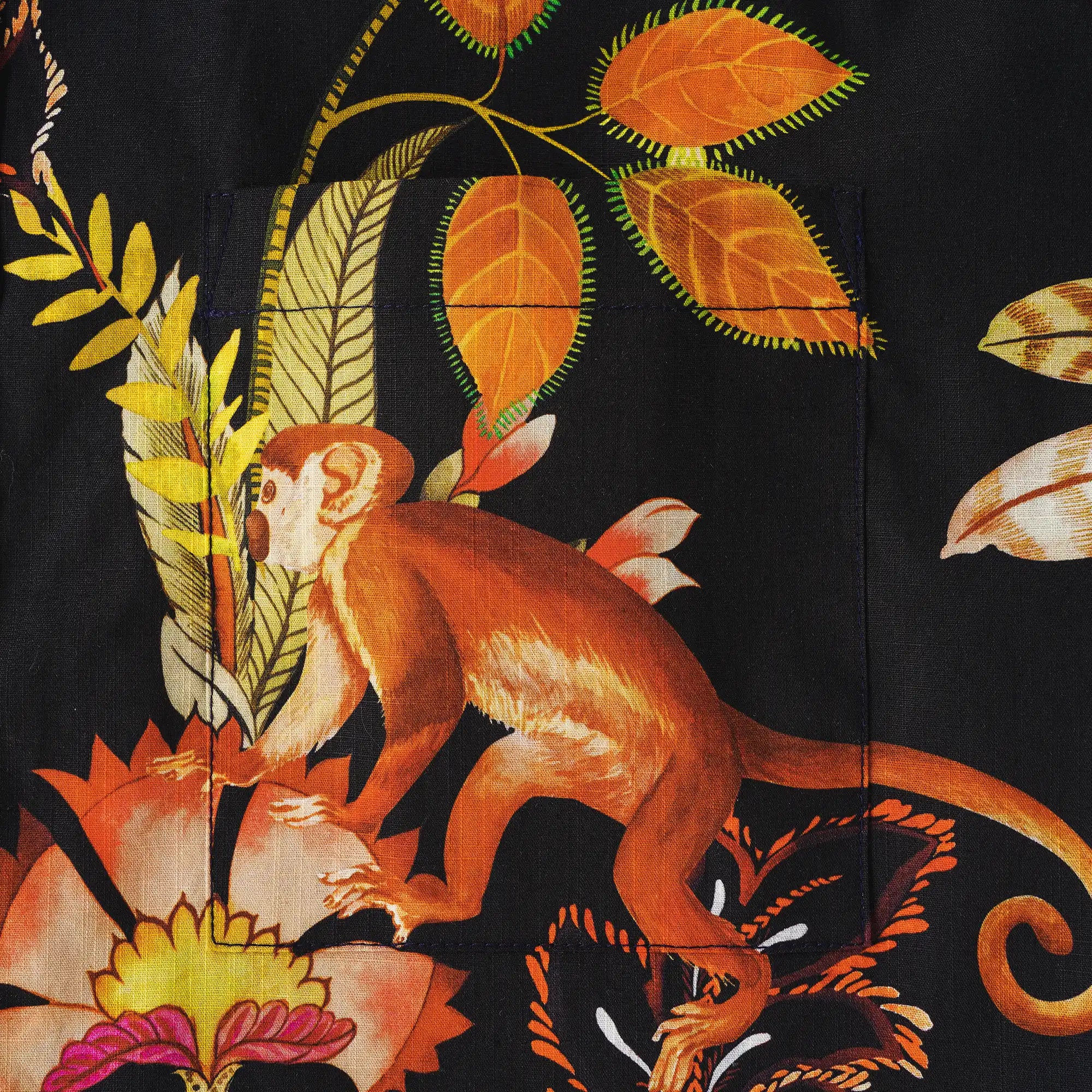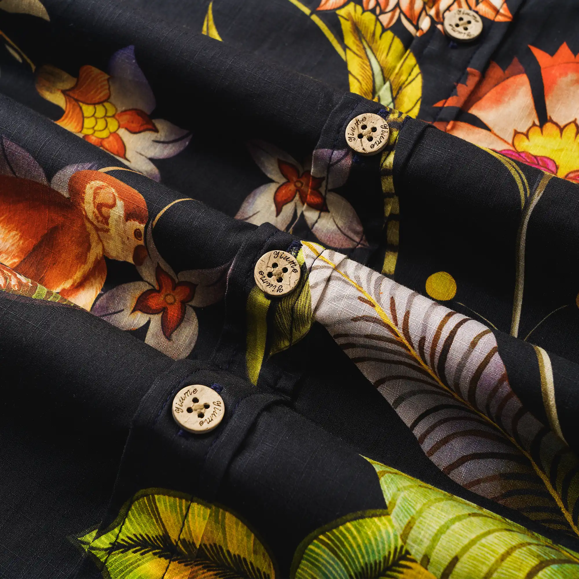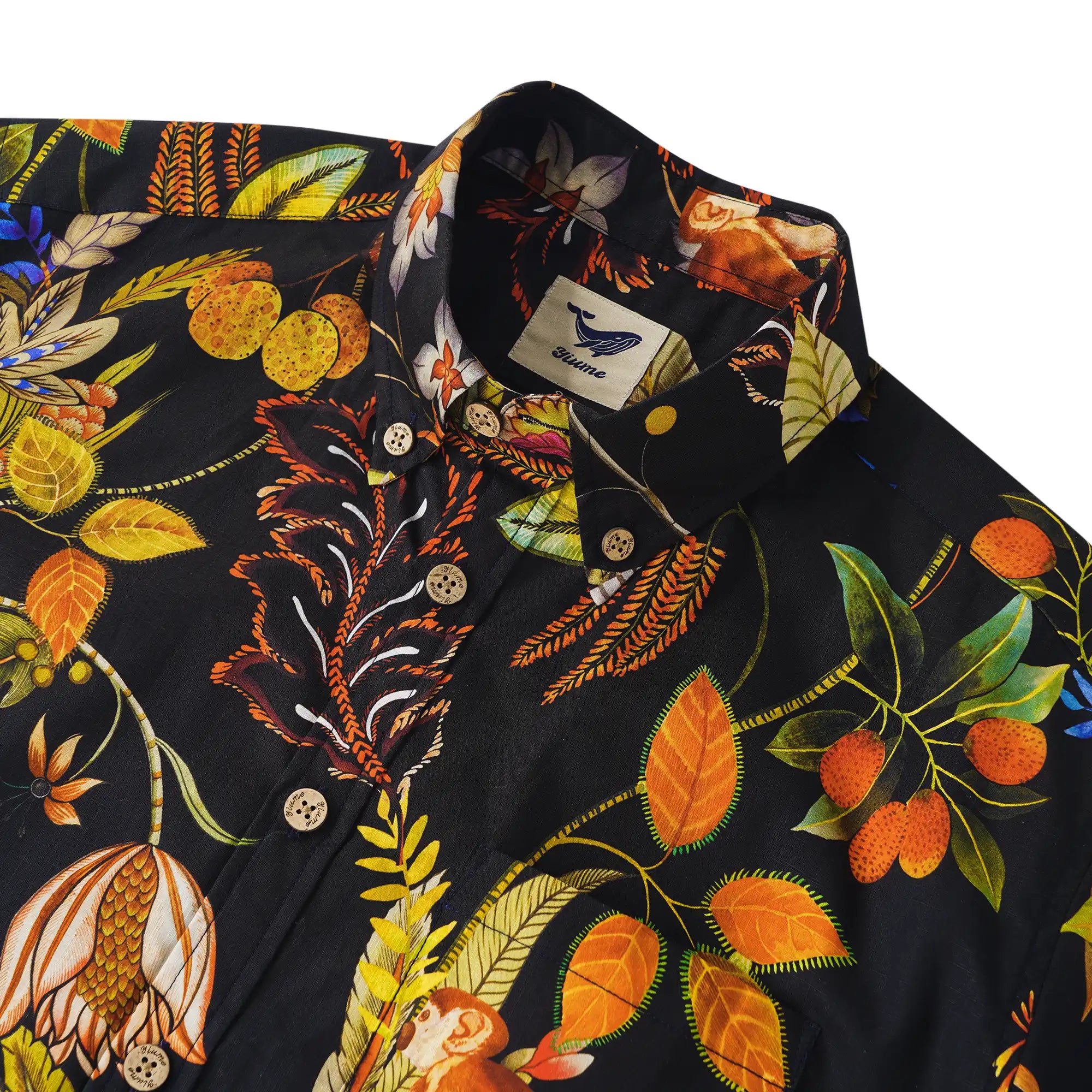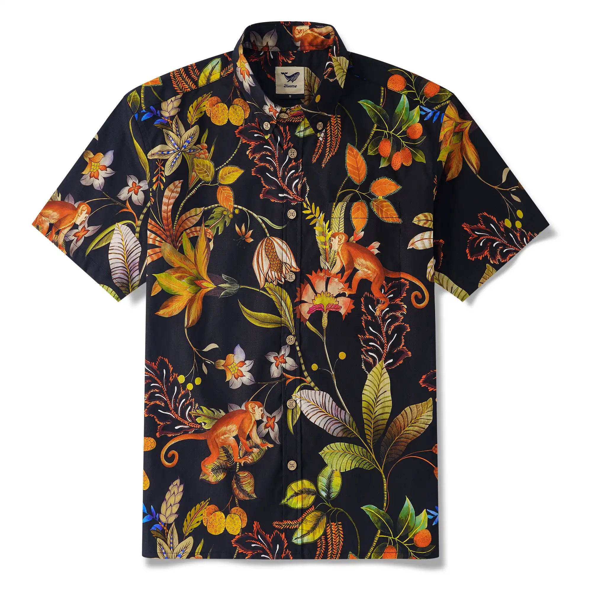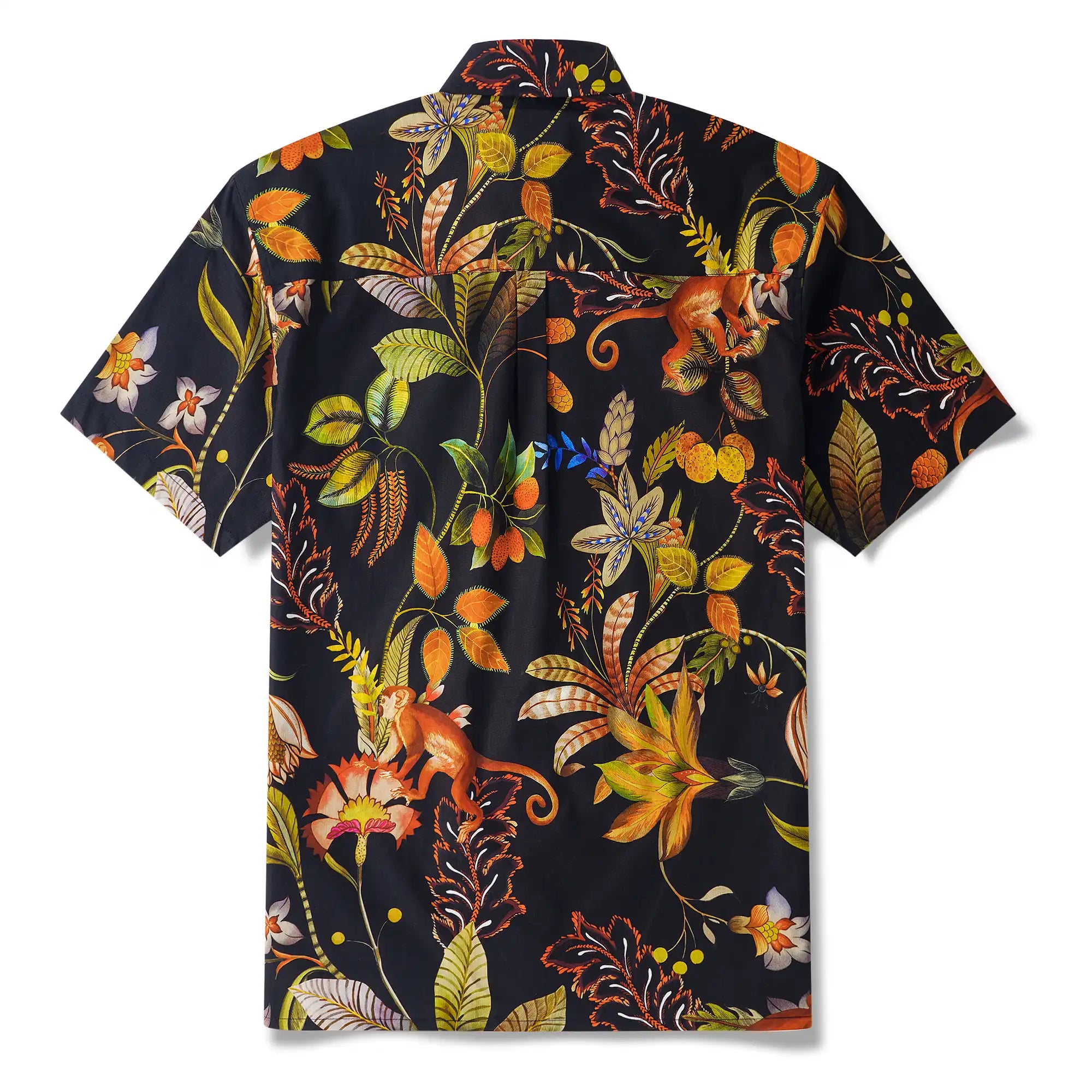 Men's Hawaiian Shirt Short Sleeve Button-down 100% Cotton Black Aloha Night Monkey & The Blossom Dance