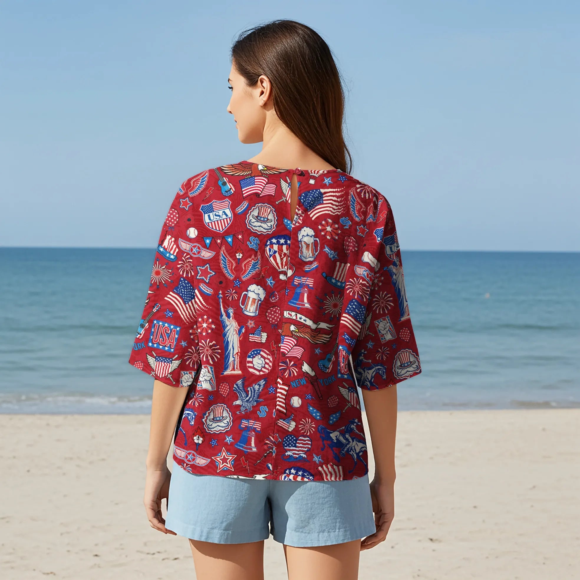 I was very excited to finally receive my top after a month-long wait. Unfortunately, the color is definitely NOT what I was expecting. In both the online pictures as well as the word "Red" in the item description, I assumed the shirt would have an over-all red tone. It does not! It is definitely orange. This is not a color I would ever choose to purchase. It is one that, I believe, will only look attractive on a few people - one of whom, is not me. It is unfortunate, as I was truly excited when I ordered the shirt. It also seems to run small in the shoulder and bust area. Be sure to take this into account when ordering.