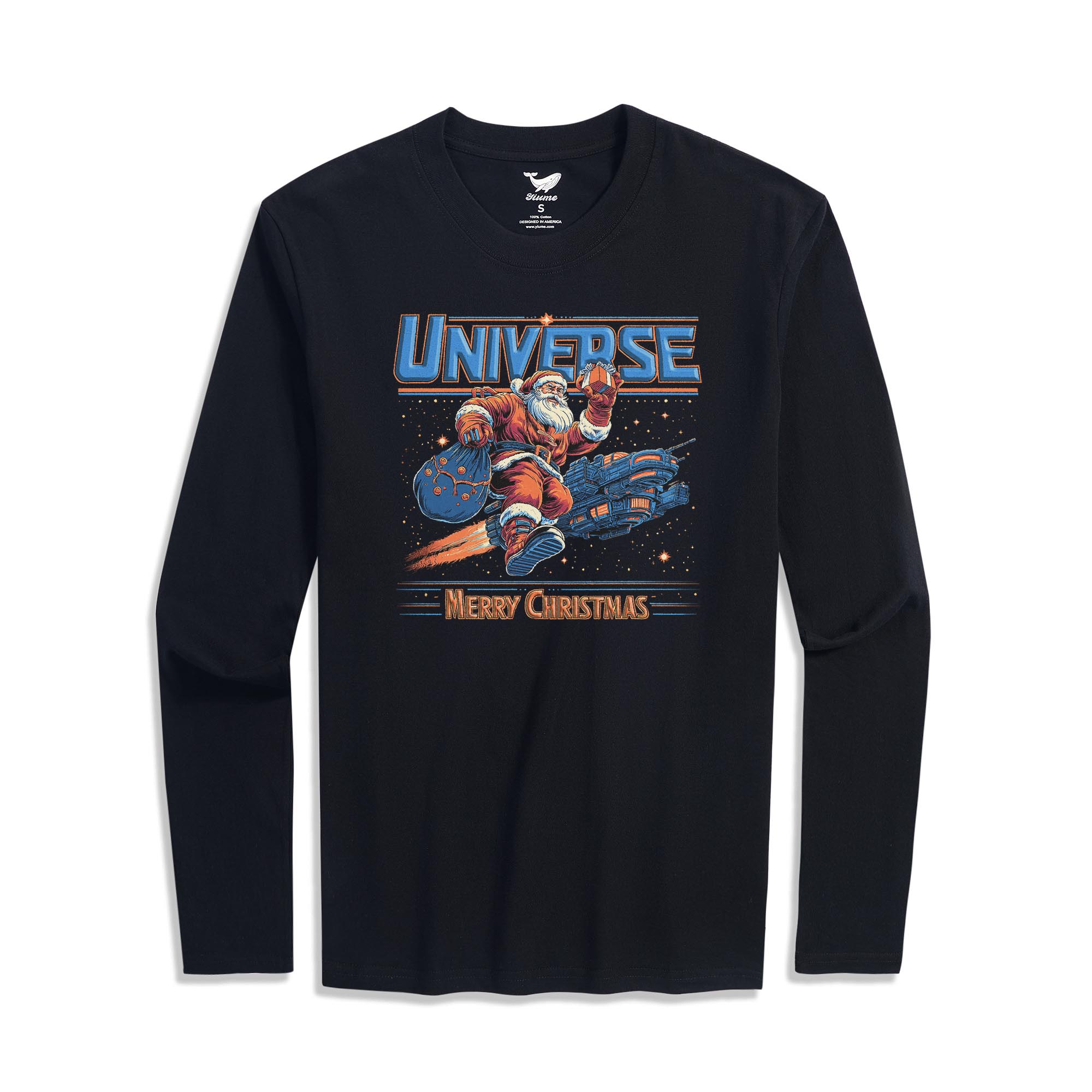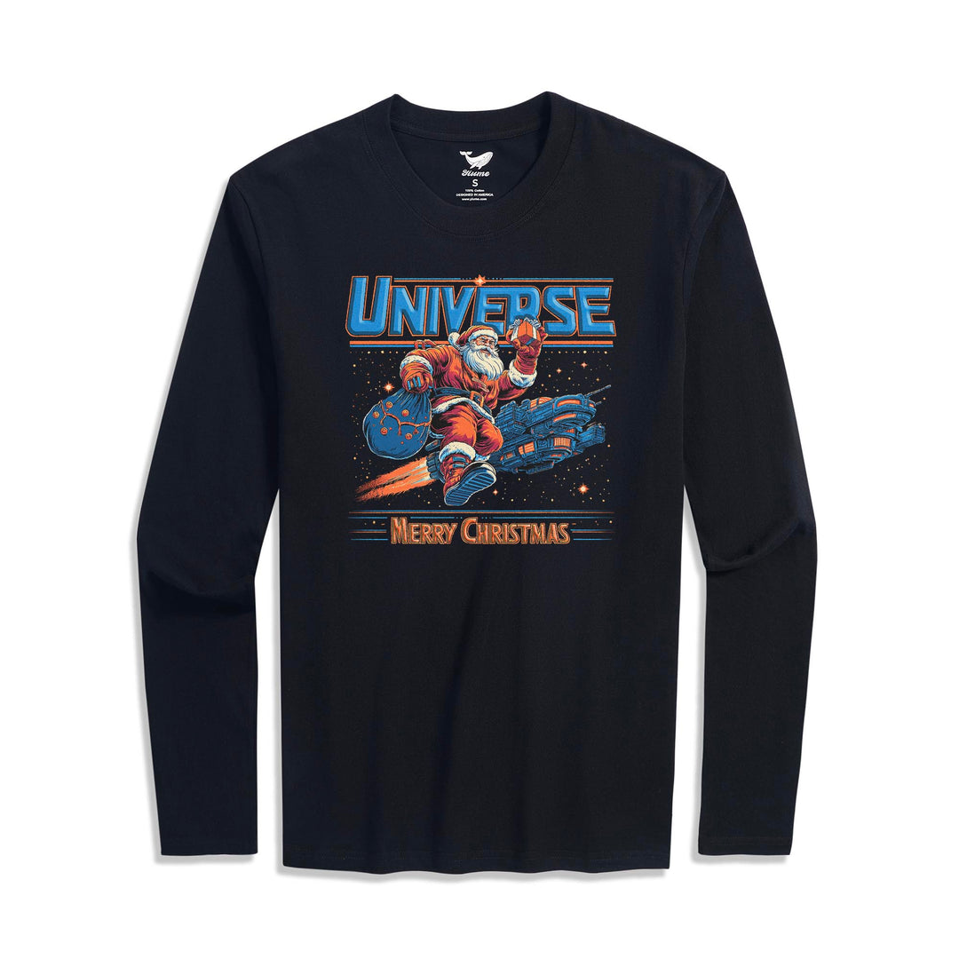 Long Sleeve T-shirt 100% Cotton Blue Aloha Santa Claus Explores The Cosmos Christmas
