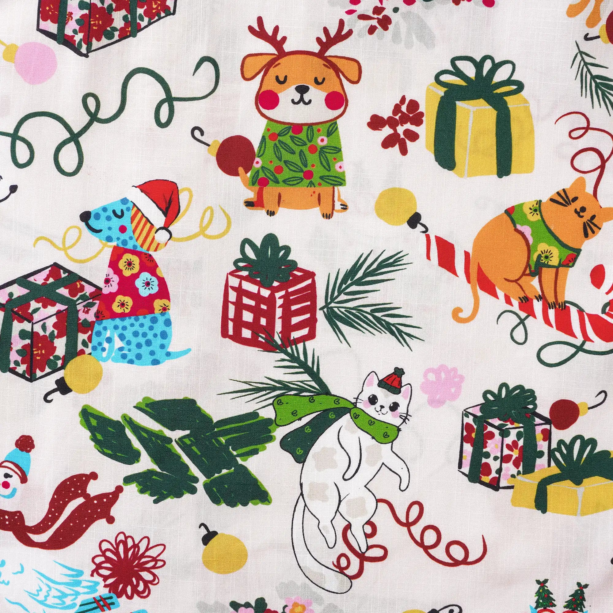 Experience a lively Christmas pet party with our shirt. The soft winter snow backdrop sets a cozy tone. Playful cats in Santa hats tinkle bells, dogs in colorful sweaters frolic among gifts. Adorable snowmen, sleigh-pulling reindeers, vibrant Christmas trees, ribbons create a festive atmosphere. Each cute pet and decoration exudes joy and warmth. Hear the pets' happy cheers and Christmas carols, feel the joy and coziness of Christmas pets gathering.