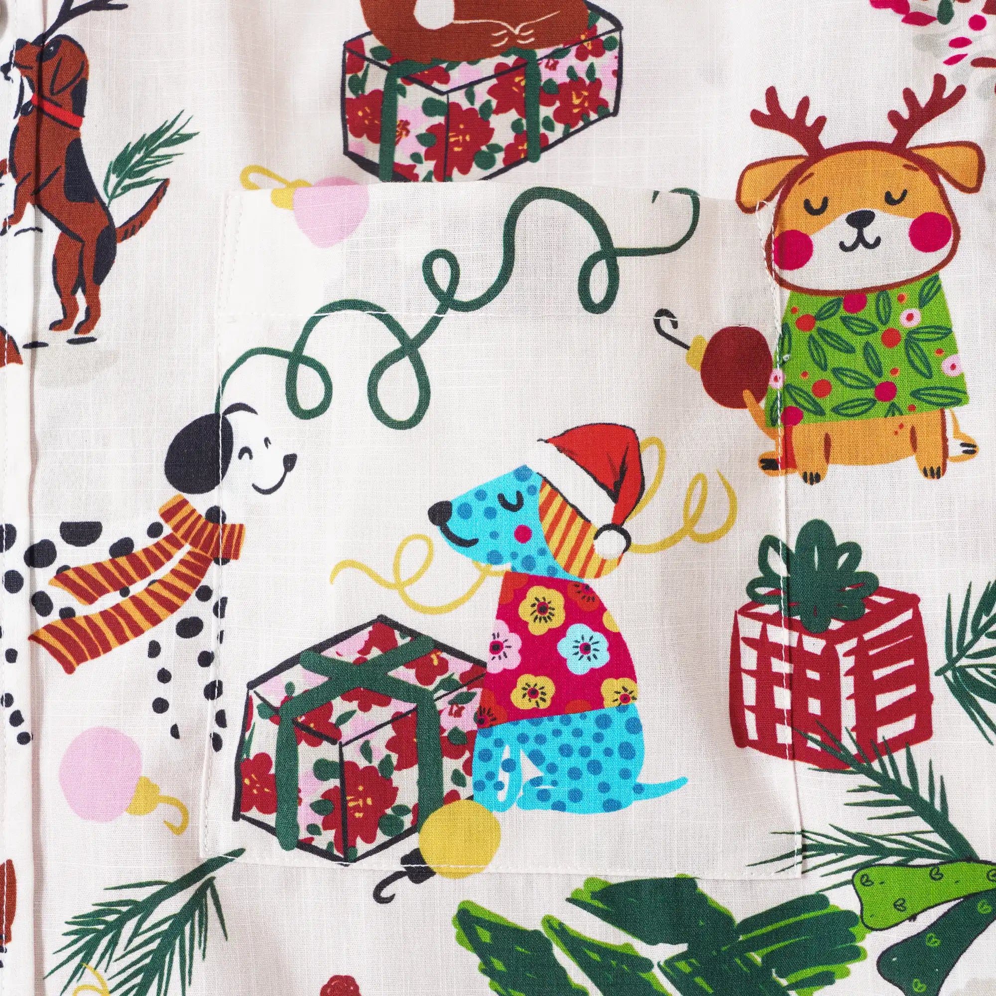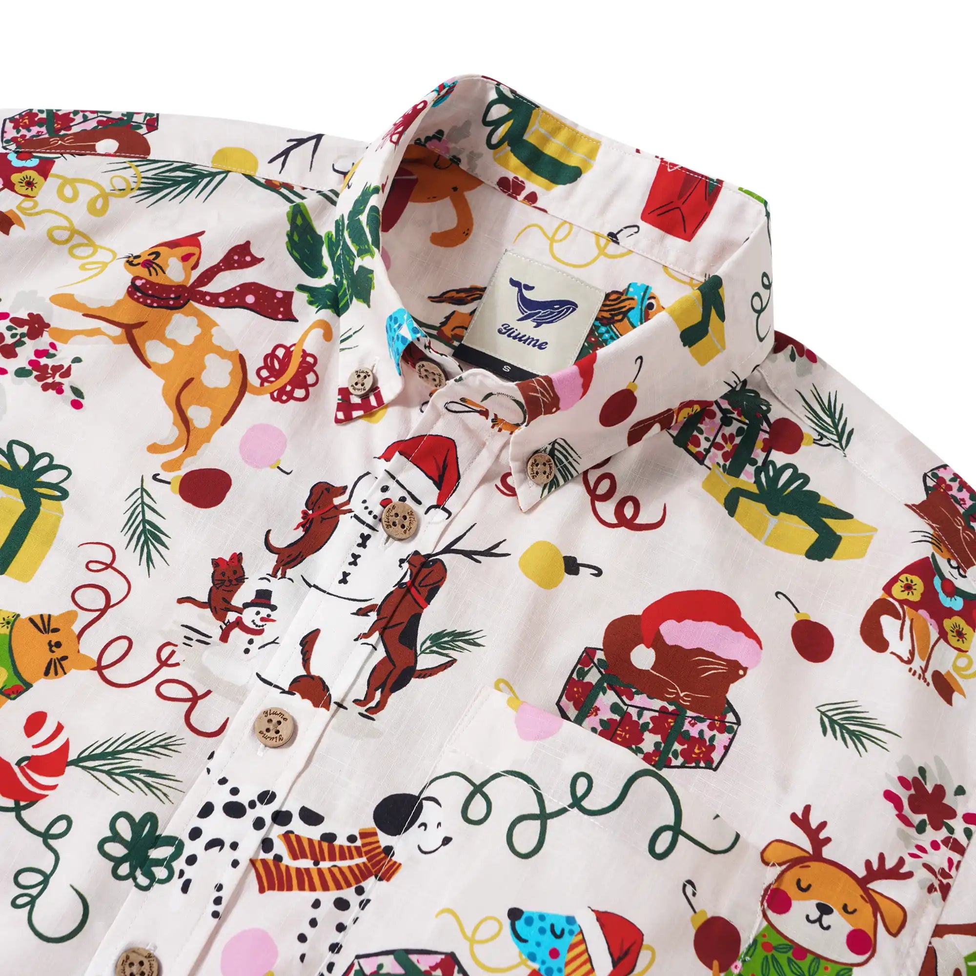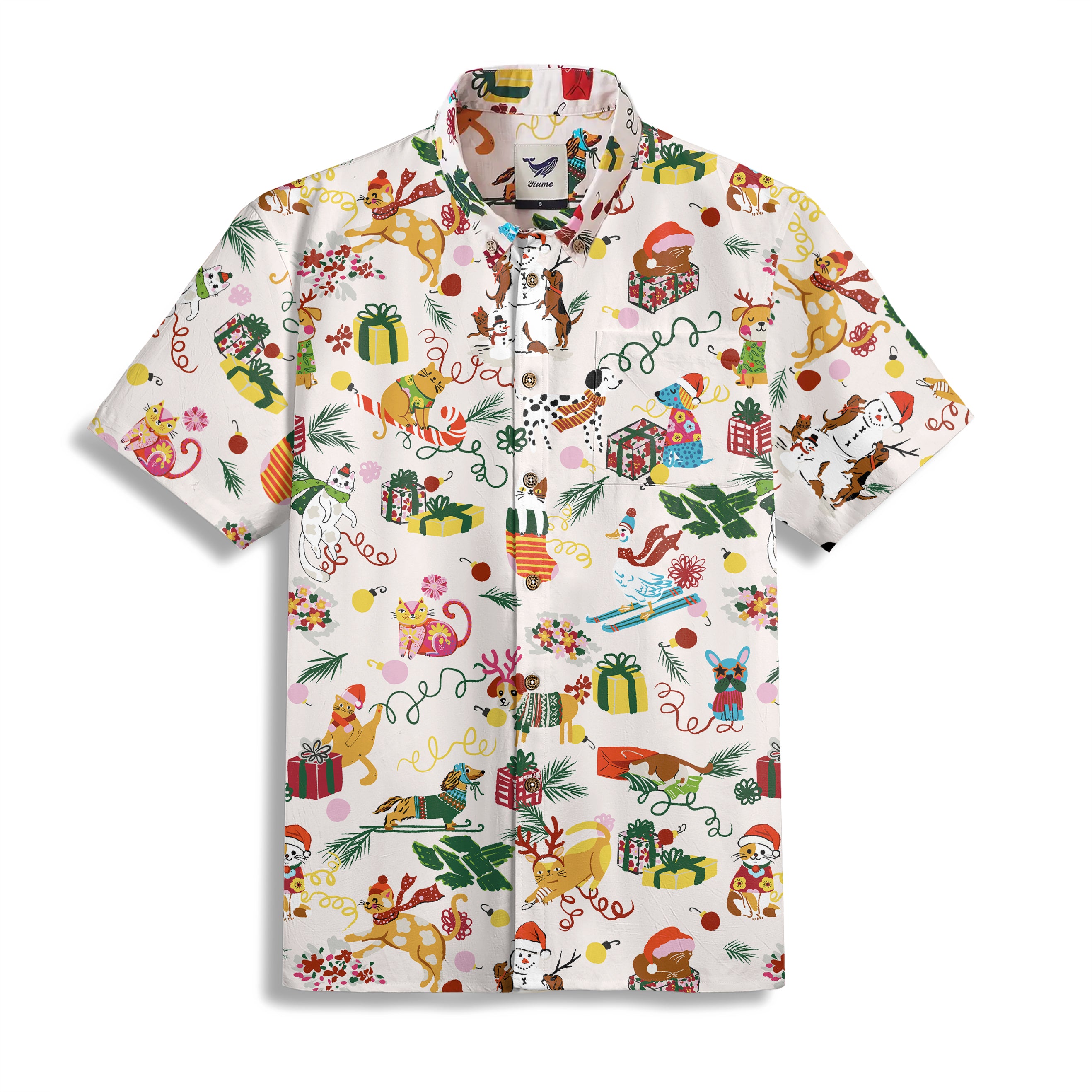 Men's Hawaiian Shirt Short Sleeve Button-down 100% Cotton Beige Aloha Christmas Pet Party