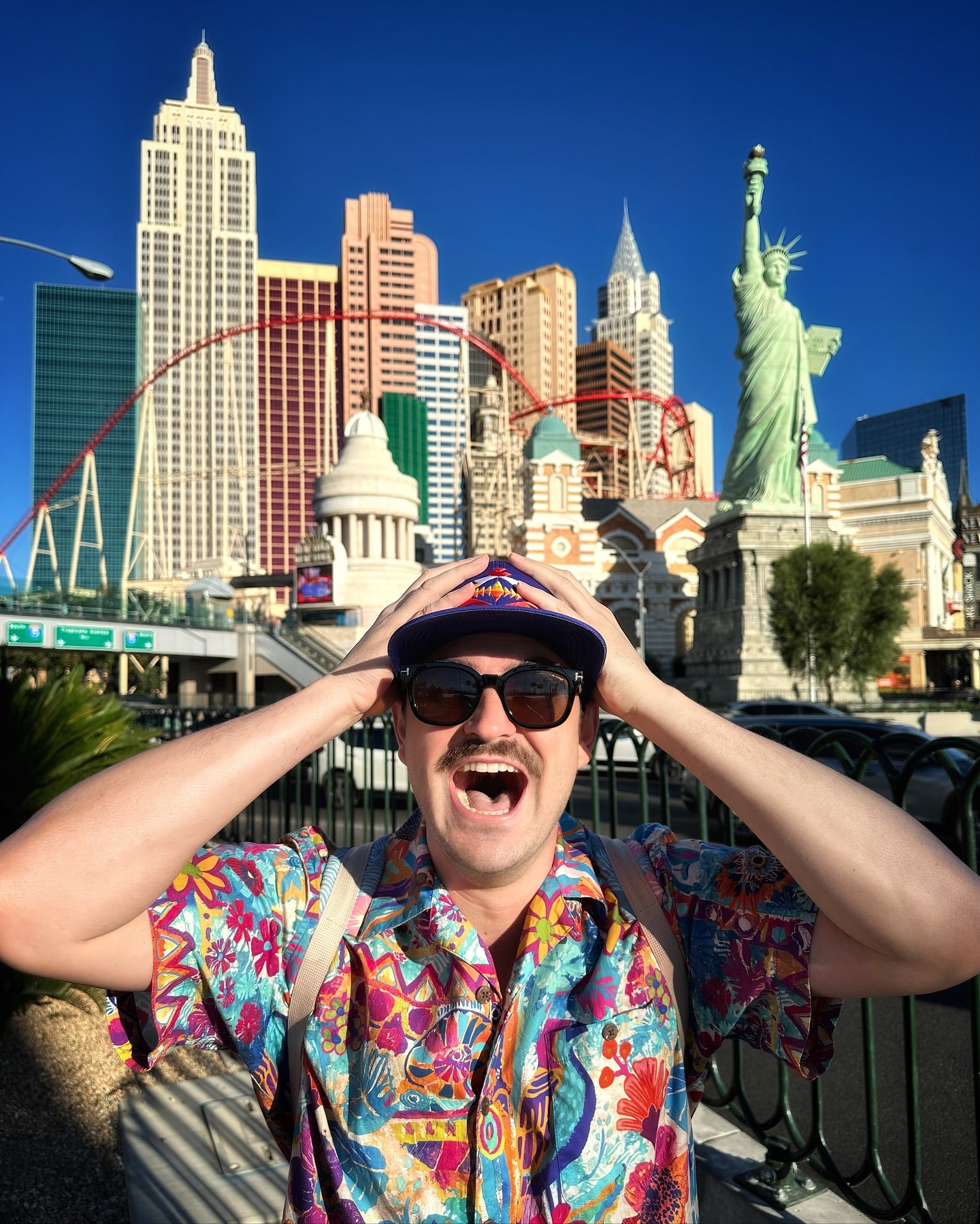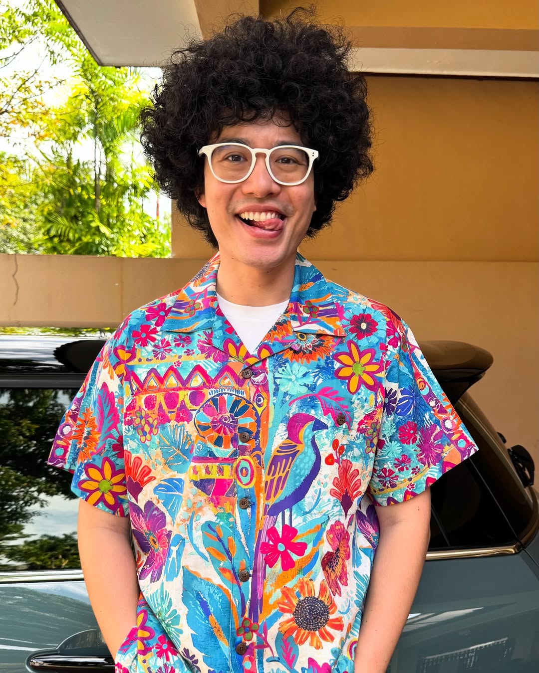 Hokusai inspired Fujiyama Ocean theme blue on white Aloha button down short sleeve shirt was out of its mail box and onto me within an hour! Pictured on me as we visited Christmas Train exhibition Flower Dome Singapore. Shirt is a work of art. Appreciate the spare buttons attached to the laundry instructions tag. Comfortable (although I chose one size too big)