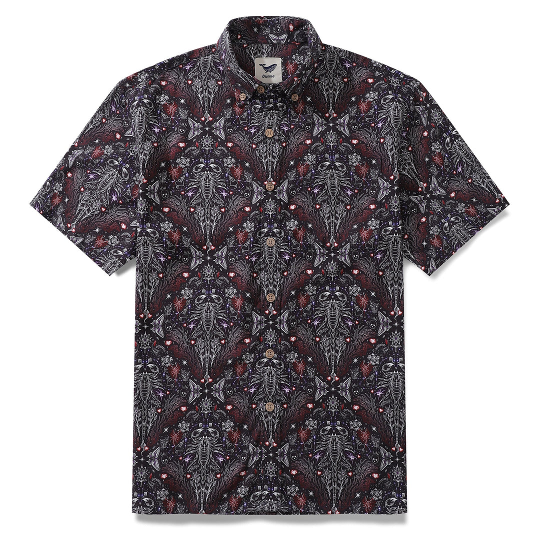 Chemise hawaïenne pour homme Imprimé Scorpion Tencel™ Boutonnée à manches courtes en coton Aloha