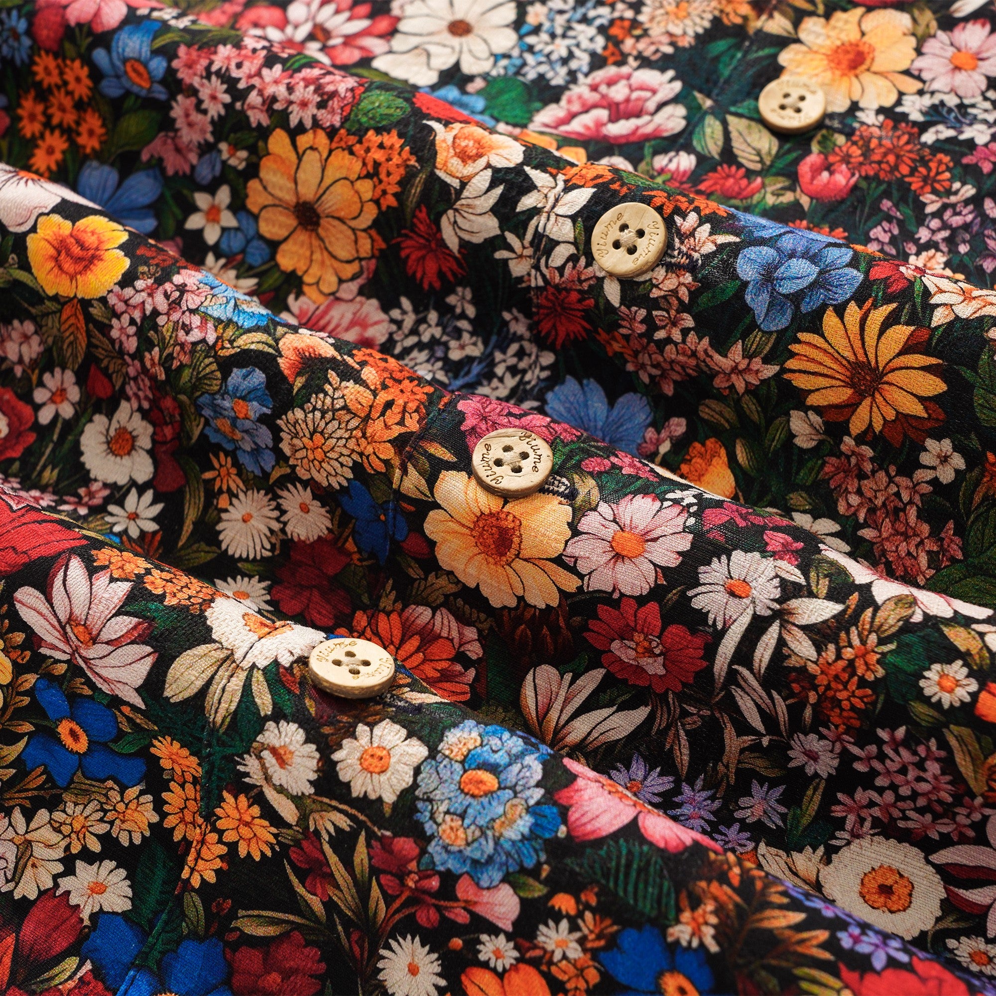 Alors que la lumière du matin caresse la terre, de minuscules fleurs s'épanouissent tels des esprits éveillés, tissant des souvenirs en une tapisserie vibrante. Chaque fleur évoque les étés de votre enfance : des roses sur les clôtures, des champs dorés, des rêves méditerranéens. Imprimées sur cette chemise hawaïenne, elles évoquent chaleur, envie de voyager et joie. Un jardin à porter, murmurant des histoires de chez soi, de liberté et d'amour à chaque brise. Un hommage à vos origines et à votre destination.