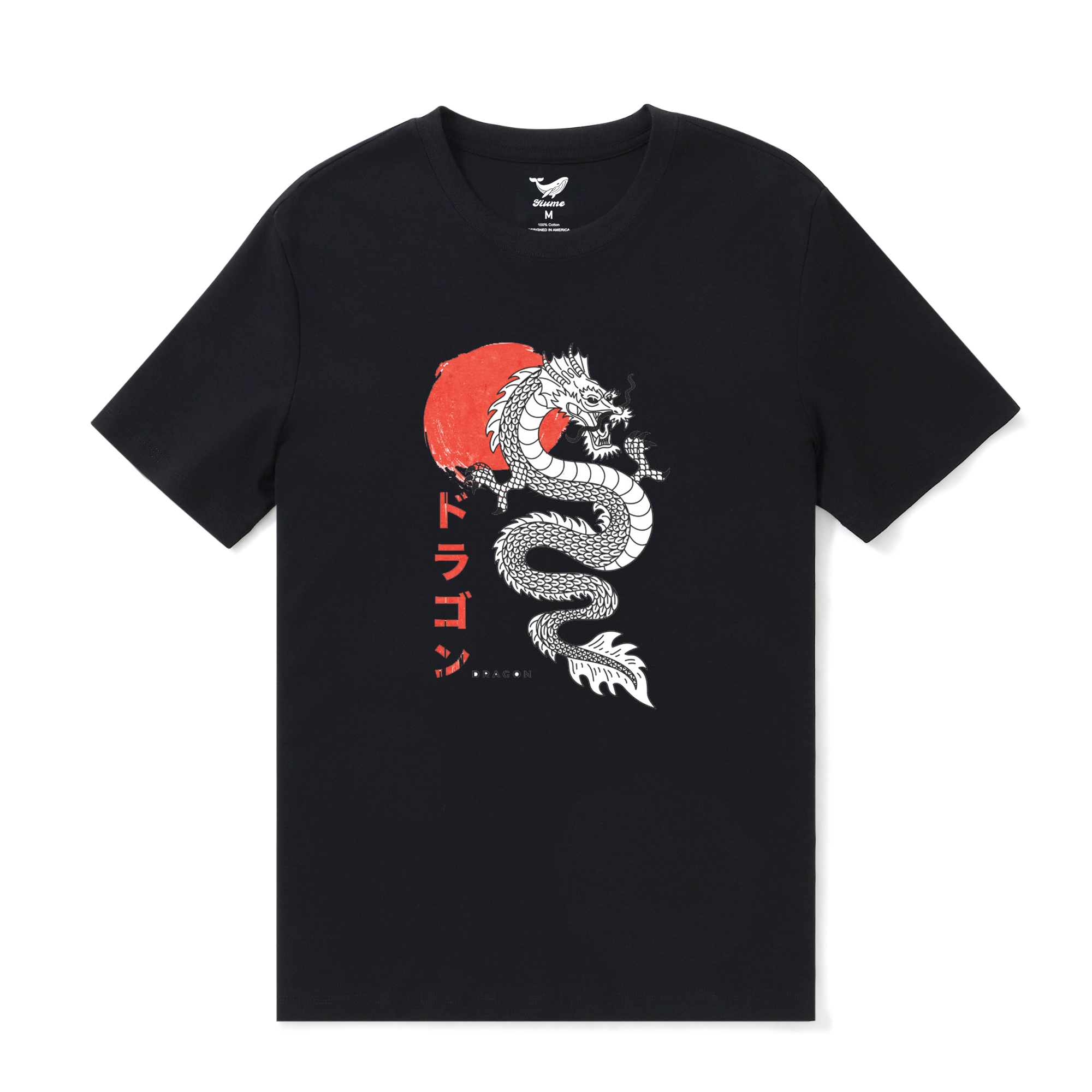 T-shirt hawaïen pour hommes T-shirt Dragon Dance Col rond 100 % coton - NOIR