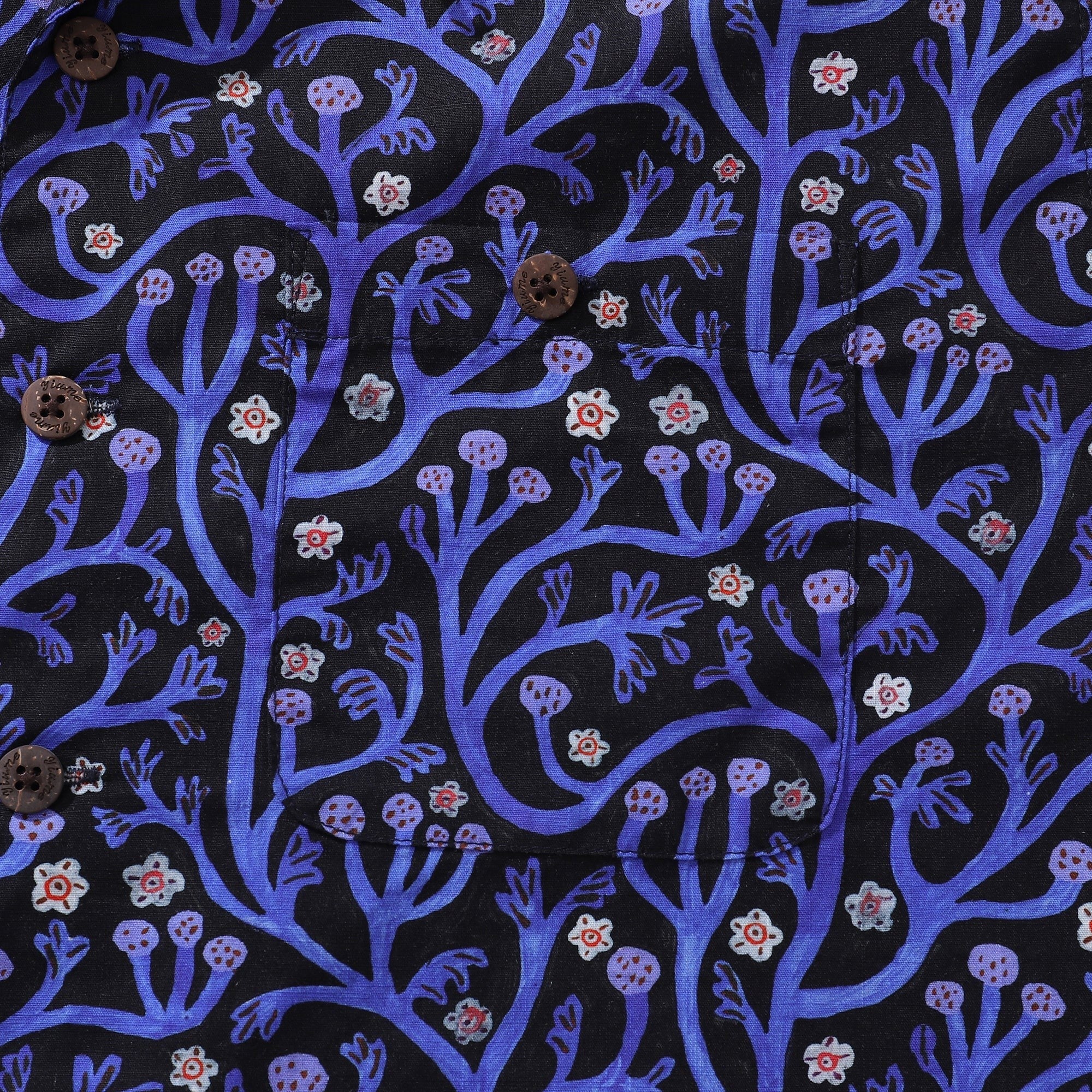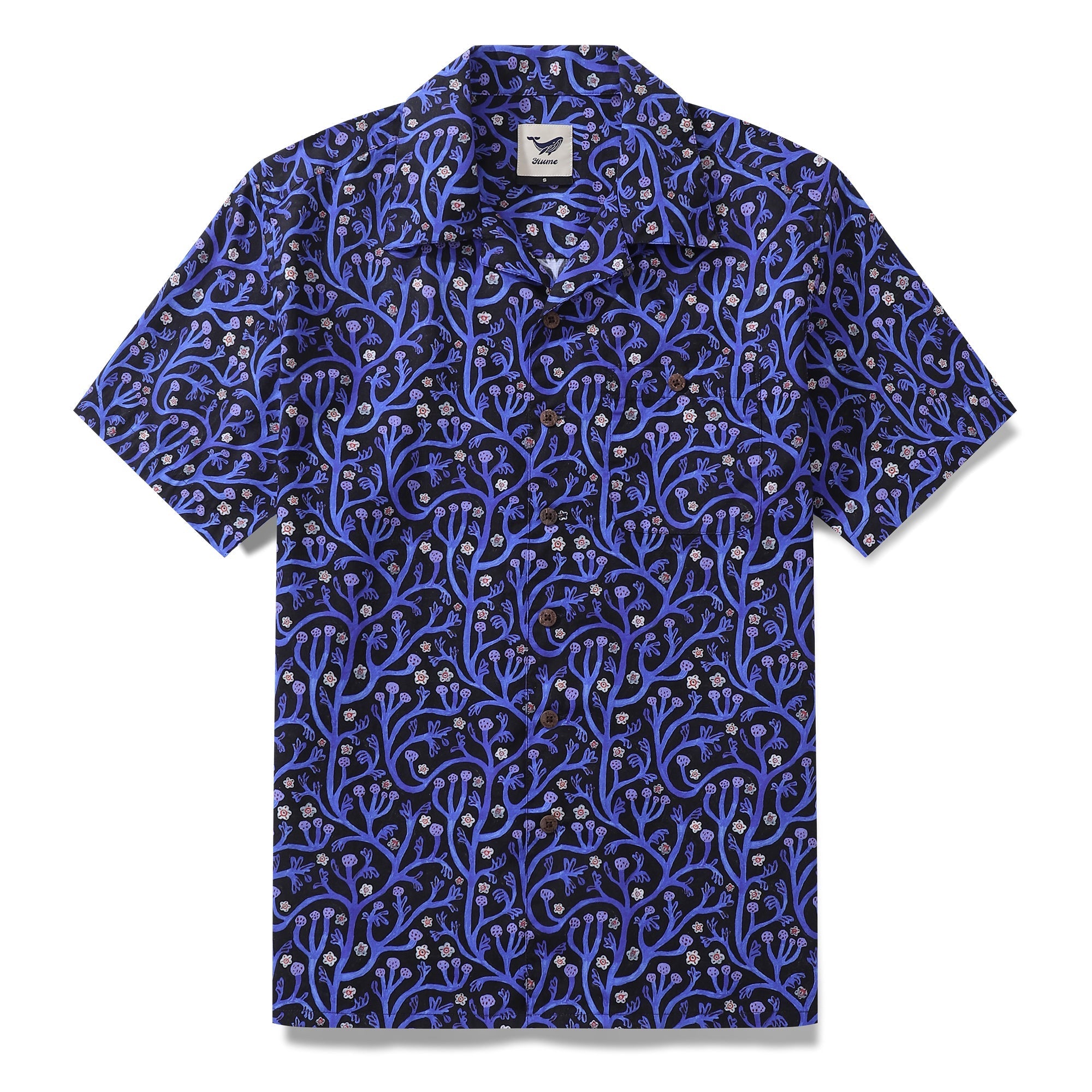 1960s Vintage Hawaiian Shirt For Men 100% Cotton Camp Collar Shirt Midnight Garden Shirt