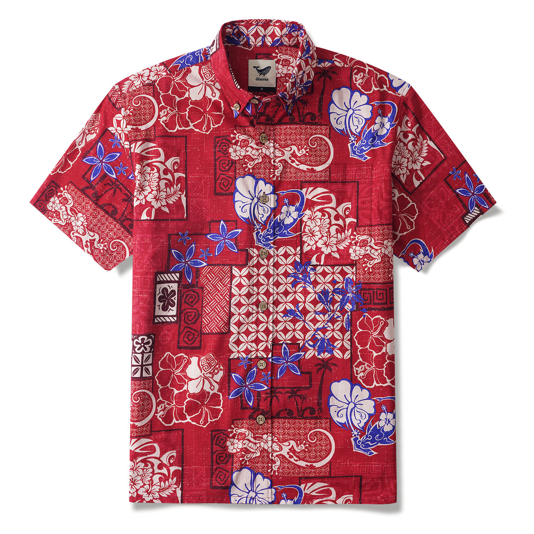 Découvrez l'essence d'Hawaï avec notre chemise inspirée des TIKI, alliant magnifiquement motifs floraux et animaux. La fleur d'hibiscus symbolise la beauté féminine, tandis que le requin représente la force protectrice, le gecko signifie la richesse gardienne, et la tortue de mer incarne l'esprit de la famille. Confectionné avec un souci du détail méticuleux, ce design capture l'essence de l'amour romantique. Débordant de charme hawaïen, ce motif exhale à la fois romance et espoir pour l'avenir. Portez cette chemise comme un symbole d'amour et d'optimisme, et embarquez pour un voyage de bonheur et d'épanouissement.