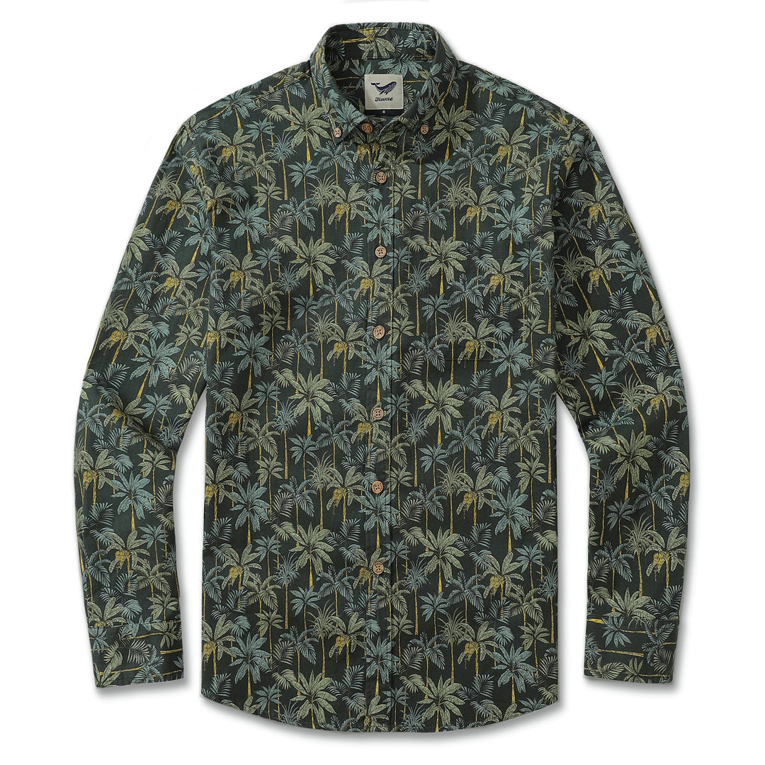 Chemise hawaïenne à manches longues pour hommes en coton, motif forêt tropicale, chemise Aloha à boutons.