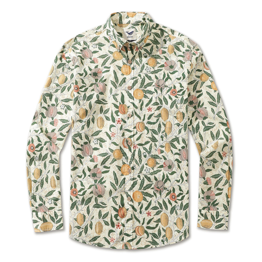 Chemise hawaïenne pour homme William Morris Fruits Grenades Designer en coton à boutons, à manches longues Aloha