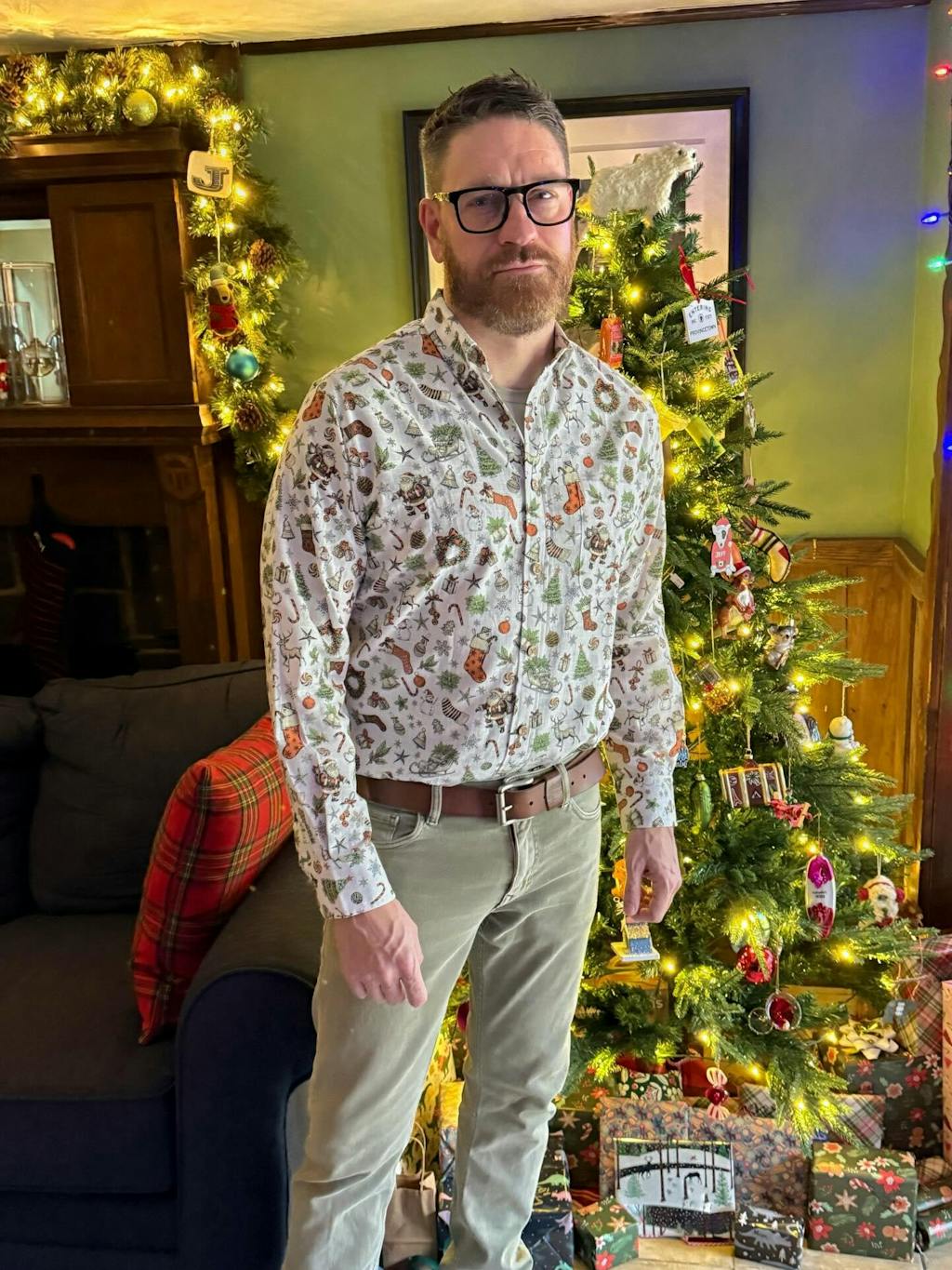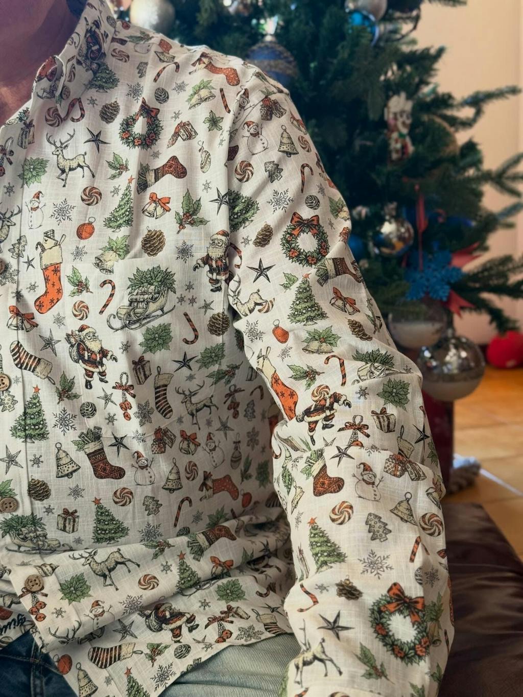 Capture the essence of Christmas with our Hawaiian-inspired shirt. Santa's smile and the anticipation of stockings are woven into the fabric, with a white base complemented by red and green, resembling starlight on a snowy night. This isn't just for the holidays; it's a subtle nod to Christmas that you can wear every day. Perfect for festive gatherings and cozy moments alone. Embrace the relaxed romance of Christmas anytime, anywhere.