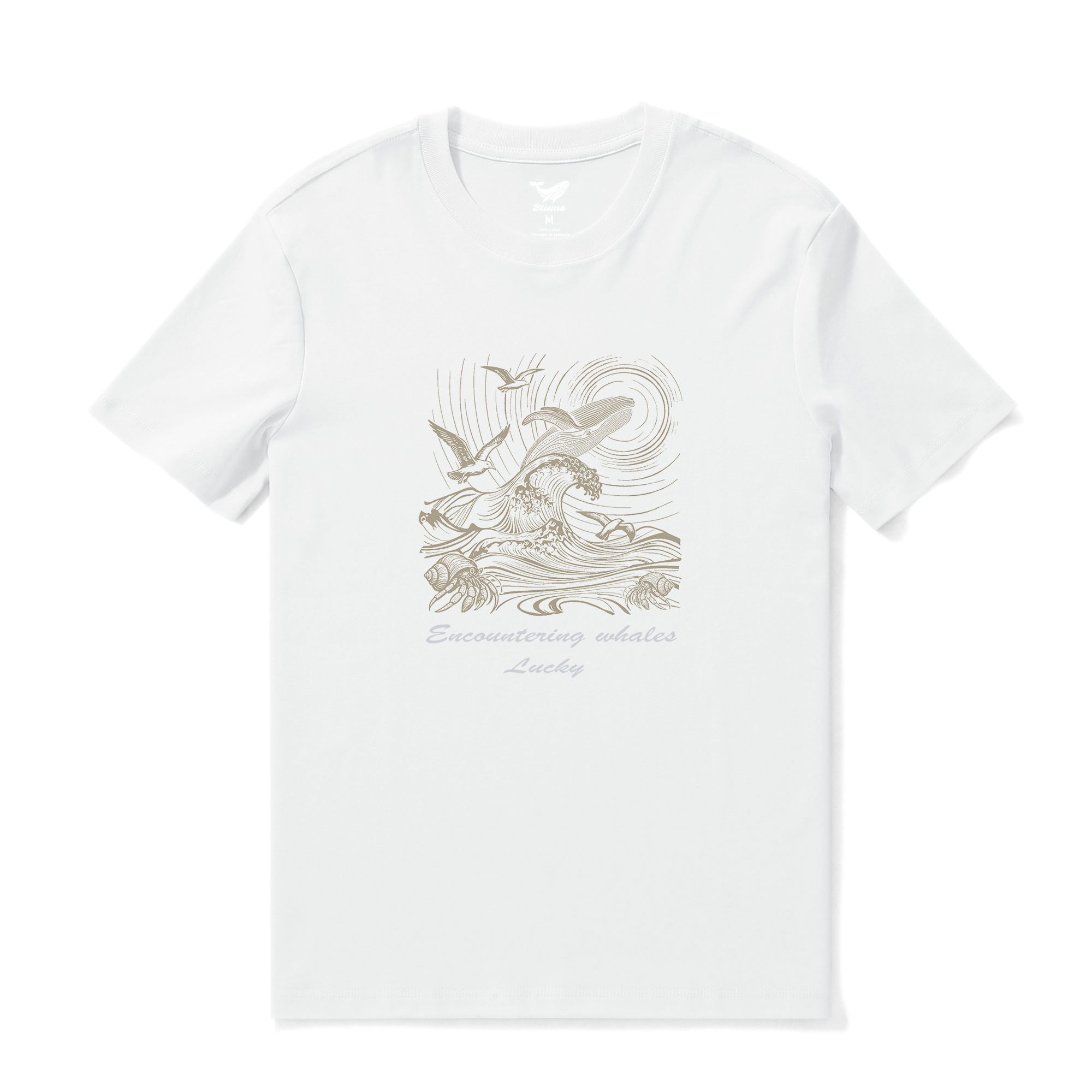 Weave Whale Hawaiian Tee Shirt Short Sleeve 100% Cotton Brown Seagull Hermit Crab Aloha Whale Whisper
