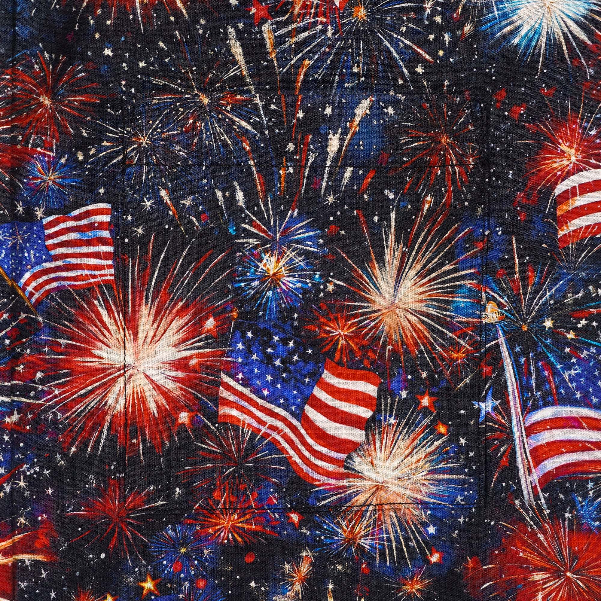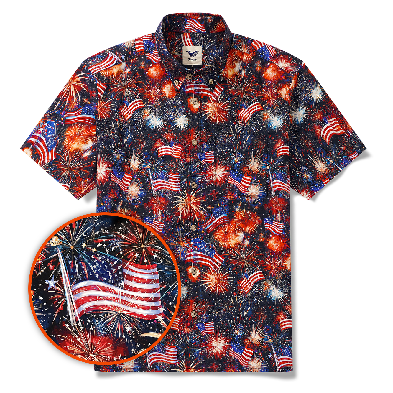 - Poche poitrine gauche et patte de boutonnage assorties à l'imprimé