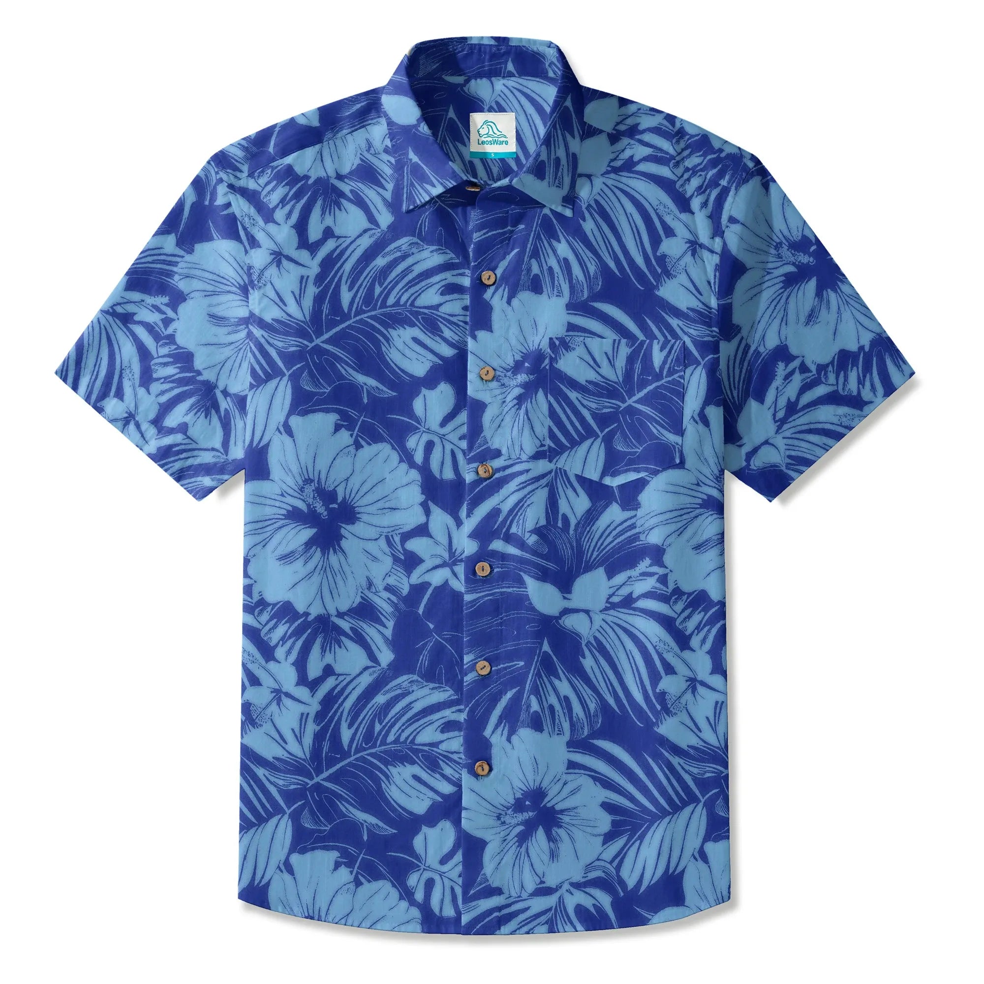 - Botton-up collar, short sleeve, buttons closure, with pocket(s)