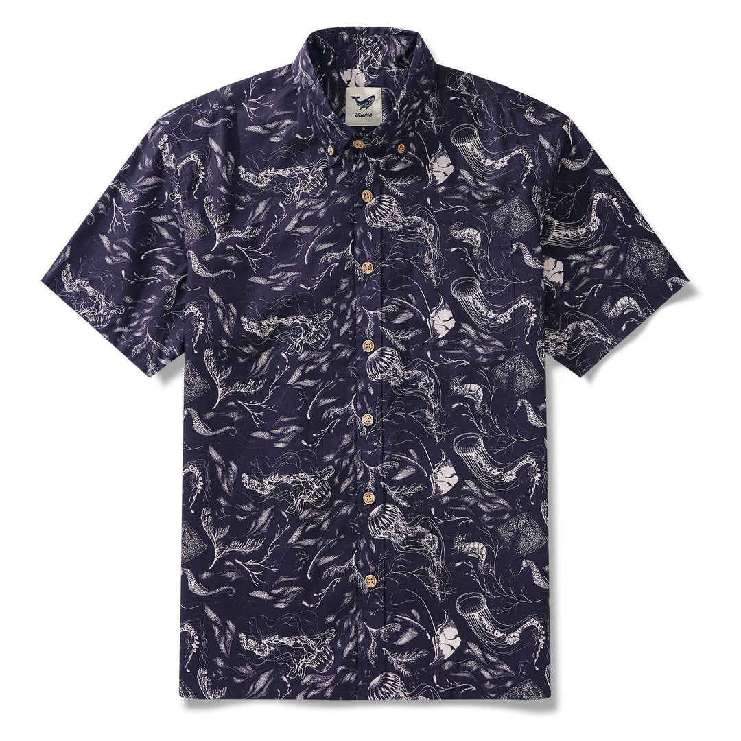 Chemise hawaïenne masculine à manches courtes à manches courtes 100% coton Aloha Deep - Sea Odyssey par Feanne