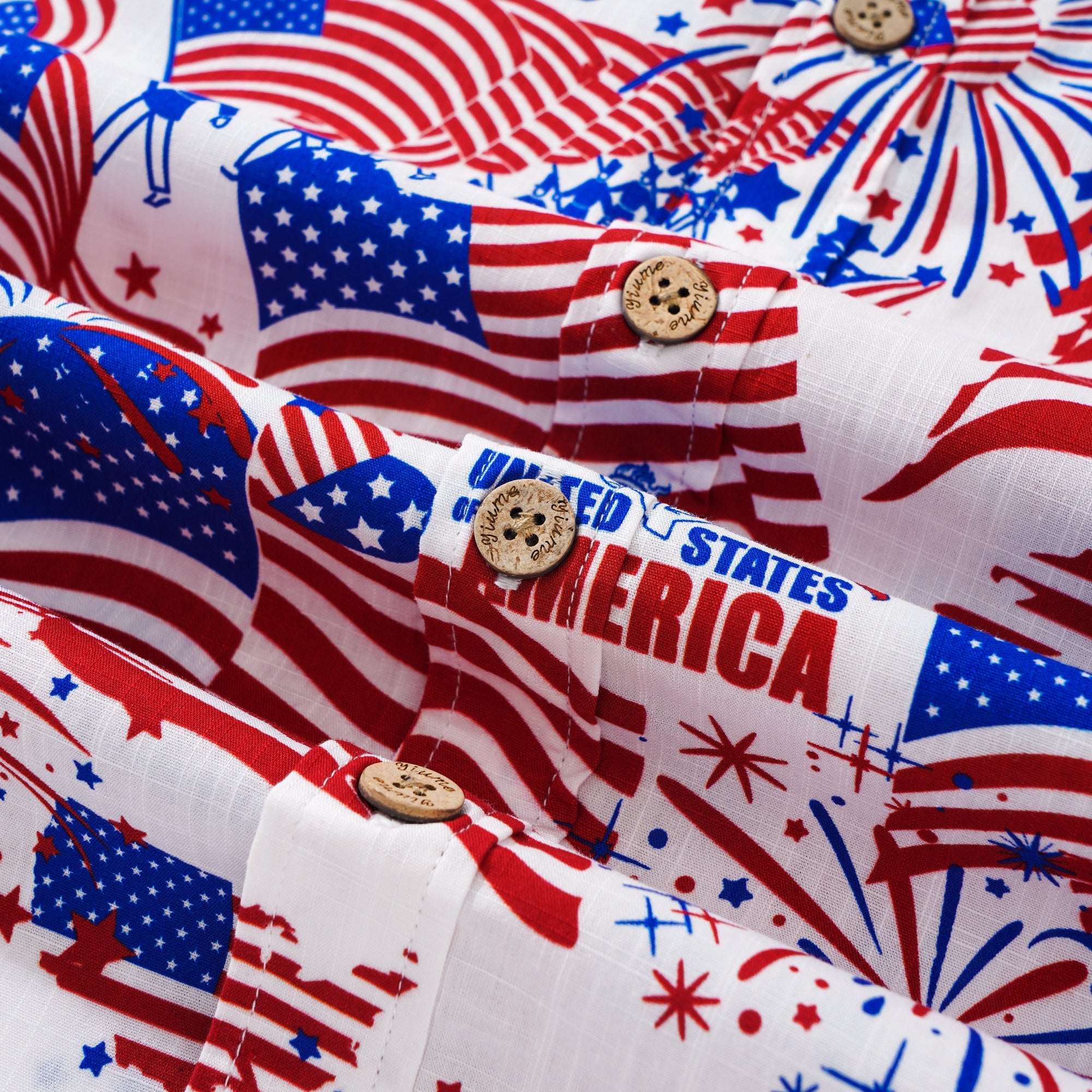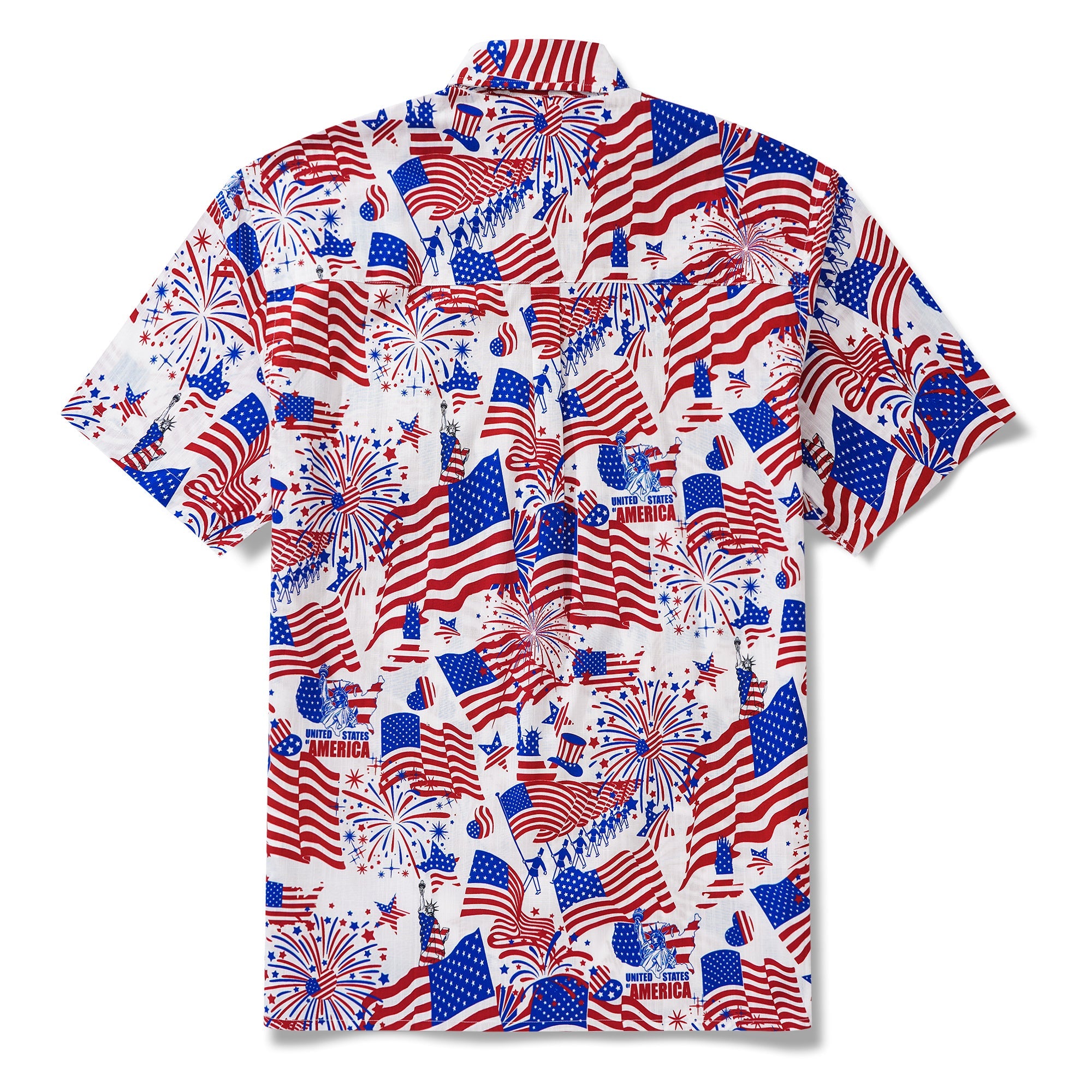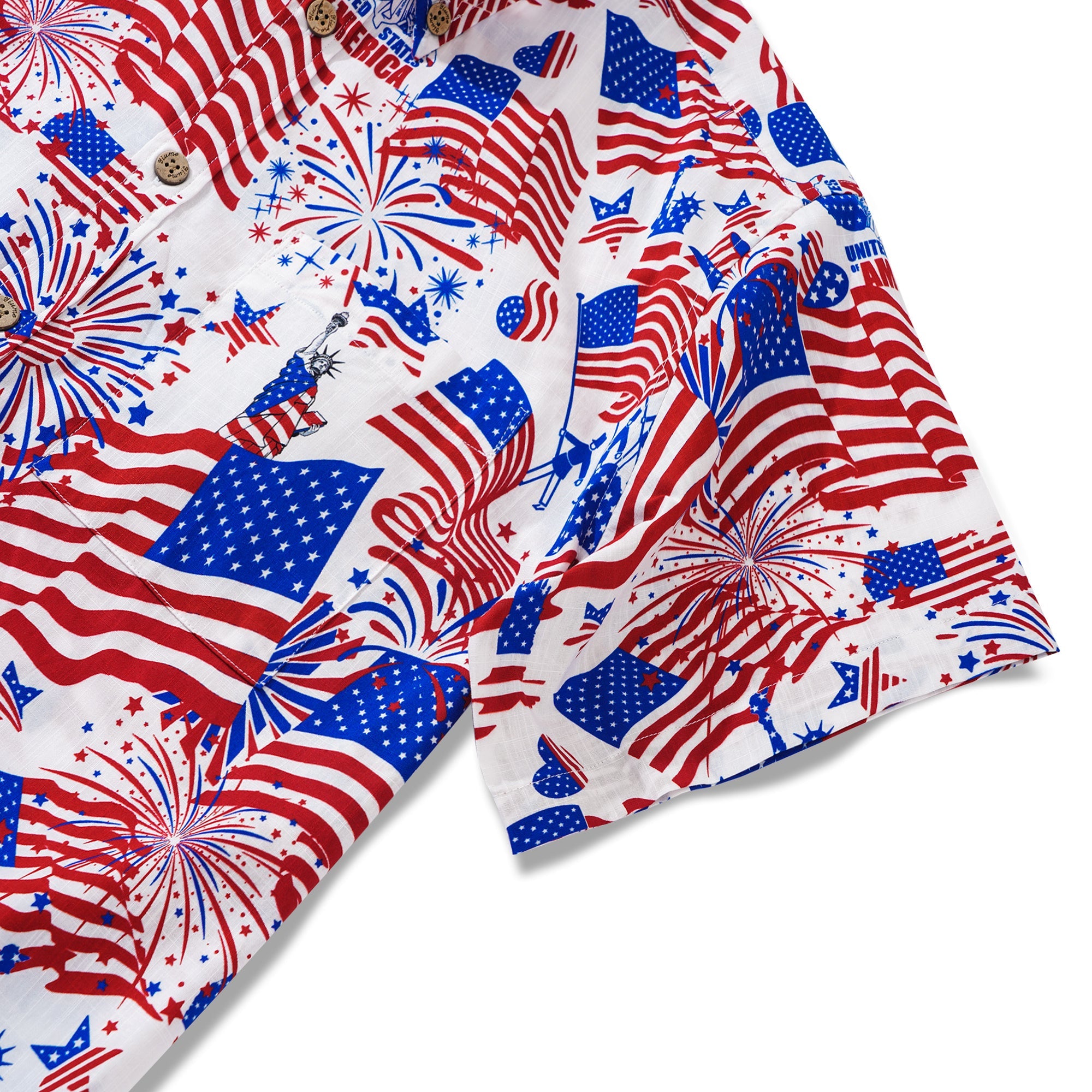 Chemise hawaïenne masculine à manches courtes à manches courtes 100% coton Blue Aloha American Célébration