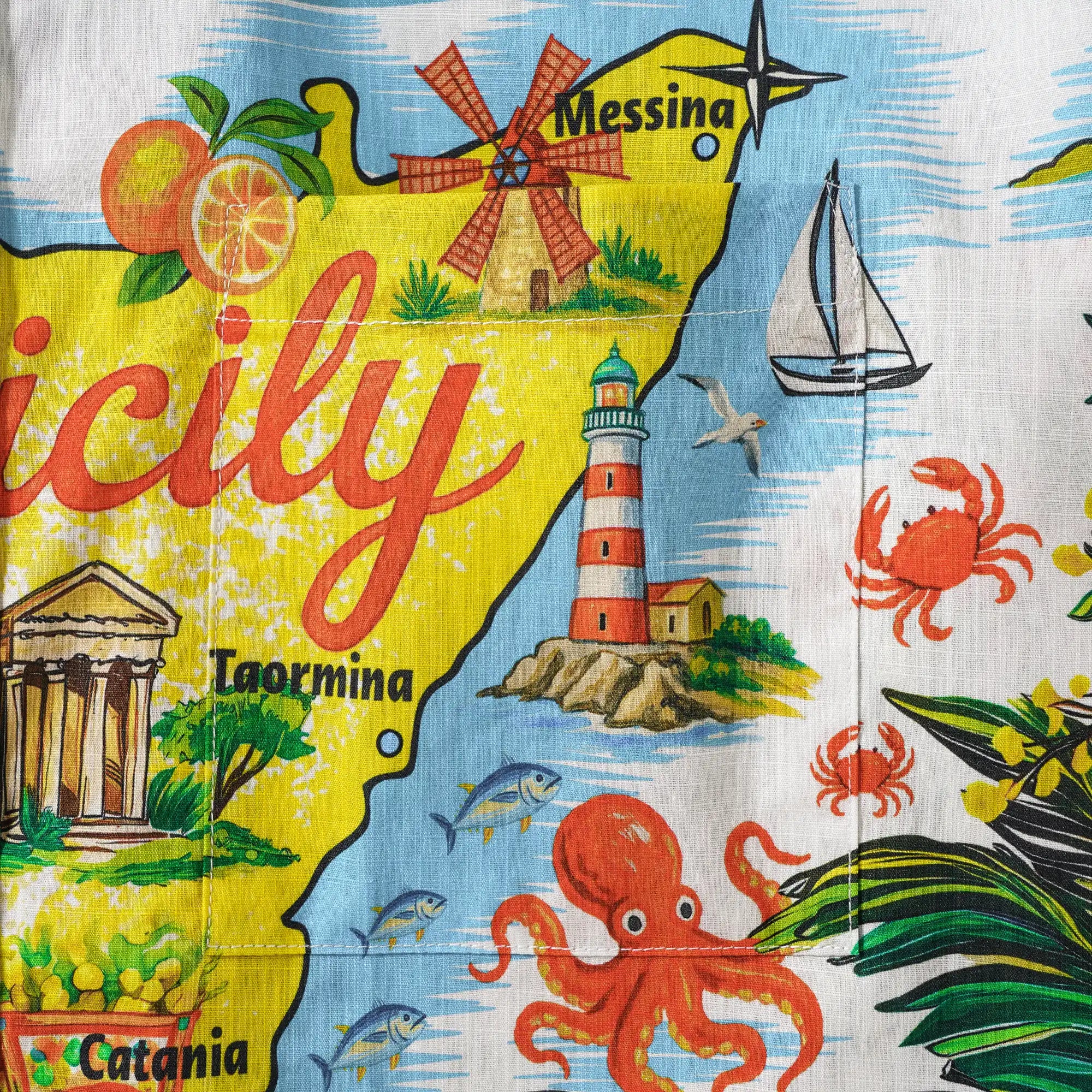 Men's Hawaiian Shirt Short Sleeve Button-down 100% Cotton Blue Aloha Sicilian Coast