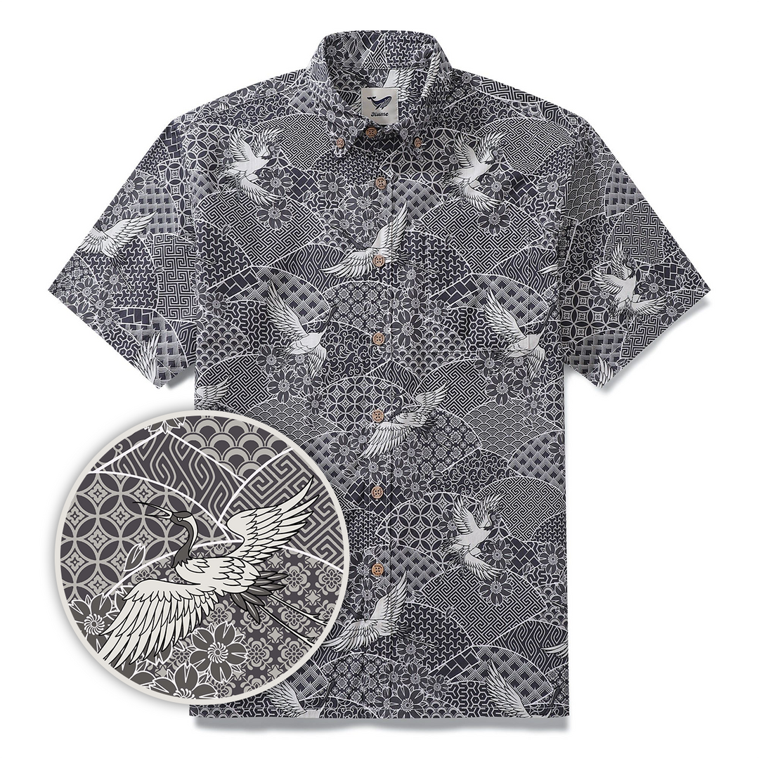 Chemise Grise Grue Pour Hommes Chemise Hawaïenne en Coton Chemise Aloha Amusante Chemise à Boutons Courte à Manches
