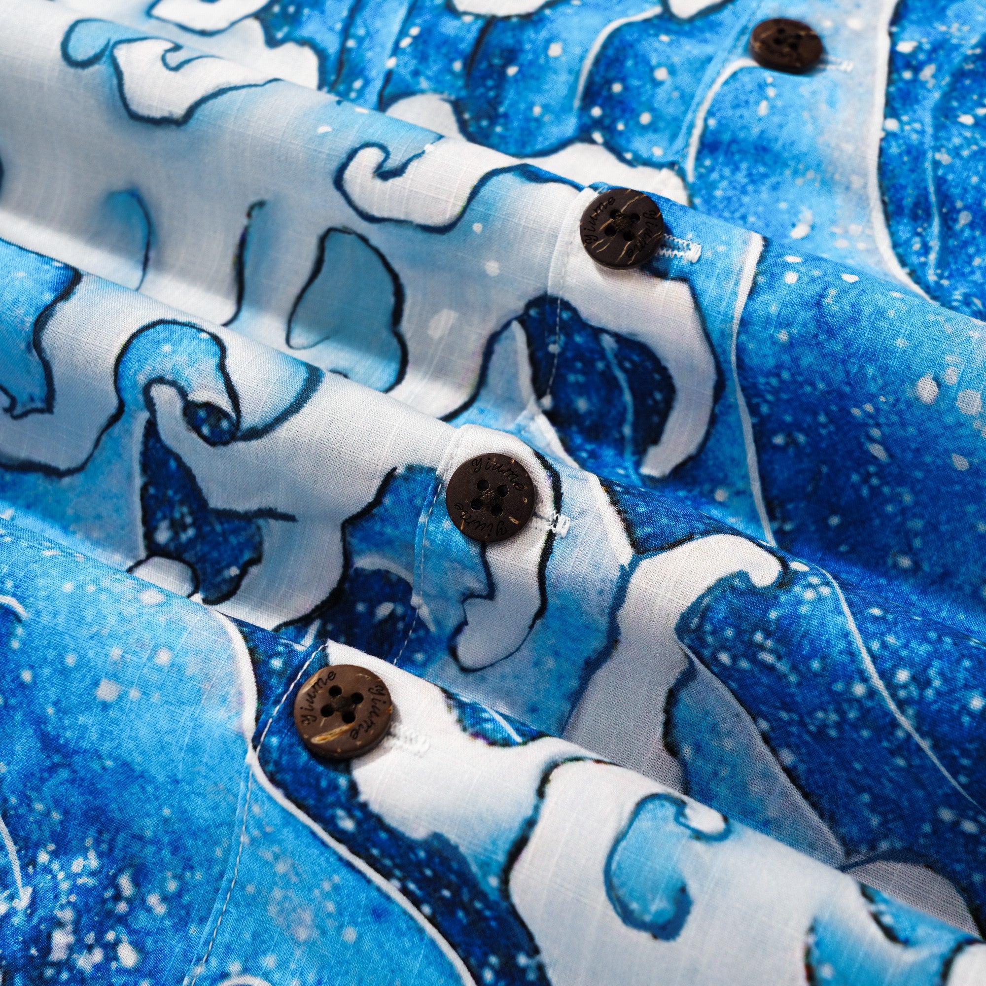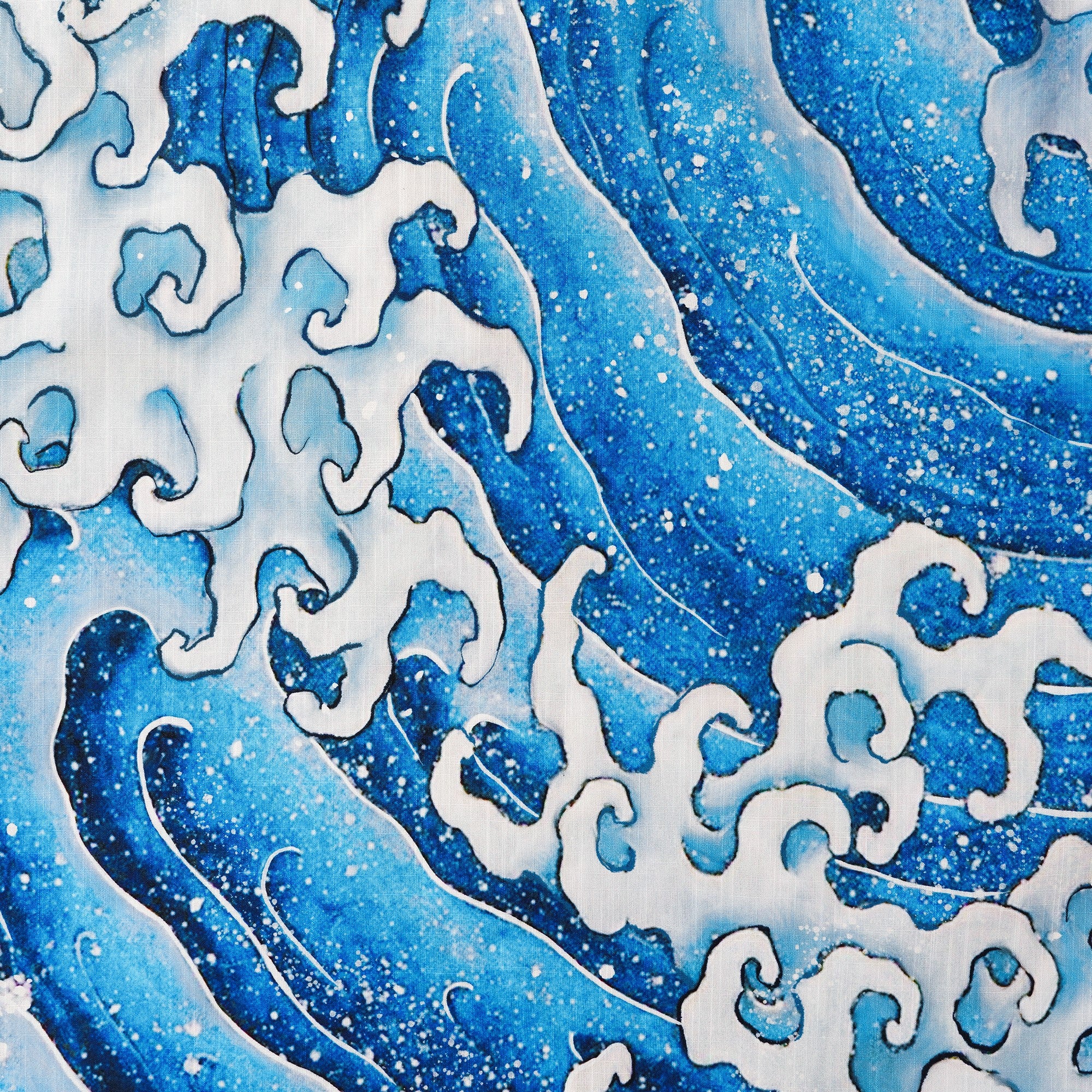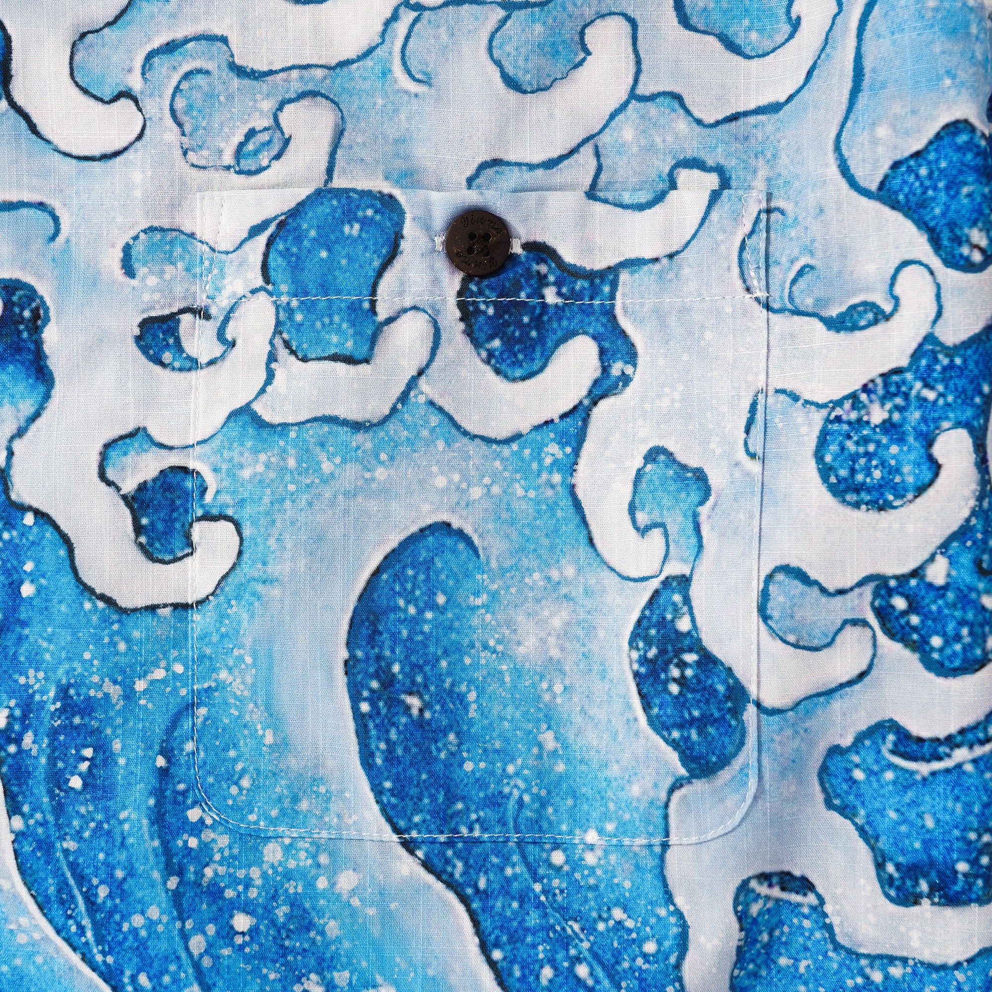 Plongez dans l'œuvre d'art envoûtante de cette chemise, où les bleus profonds et les blancs s'entremêlent pour représenter un paysage marin captivant. Les vagues ondulantes semblent danser et déferler, évoquant un ballet d'énergie. Chaque courbe, chaque crête, est méticuleusement travaillée pour capturer la puissance brute et la beauté de l'océan. Les bleus apaisants évoquent la tranquillité et la profondeur, tandis que l'écume blanche ajoute une touche de vivacité. Cette pièce n'est pas qu'un tableau ; c'est une fenêtre sur l'âme de la mer. Pour ceux qui chérissent la beauté majestueuse et l'attrait de la nature, elle offre l'occasion d'intégrer la grandeur de l'océan dans votre espace, un rappel de l'inspiration infinie de la nature et de la puissance paisible et vivifiante des vagues.