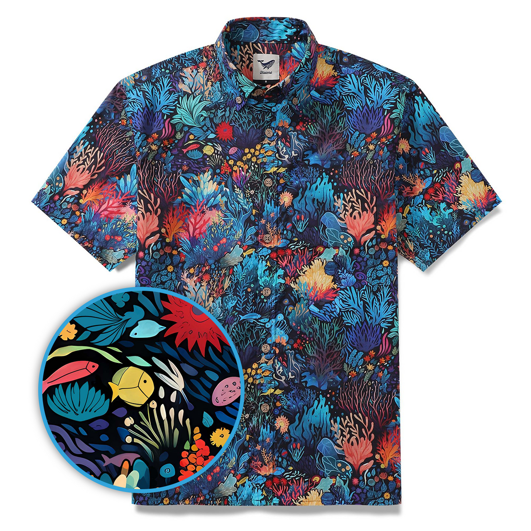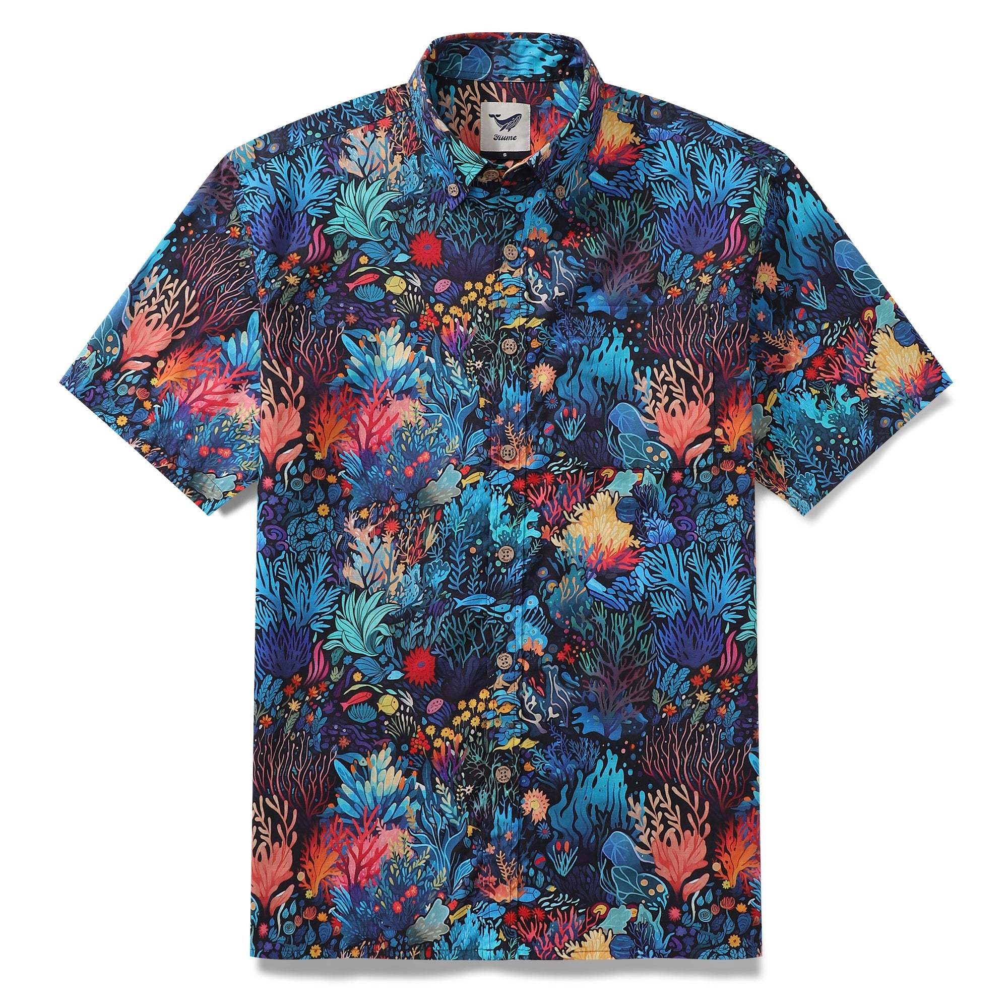 Meilleure chemise hawaïenne pour hommes Plantes marines Primal Seabed Chemise à boutons courte en 100 % coton