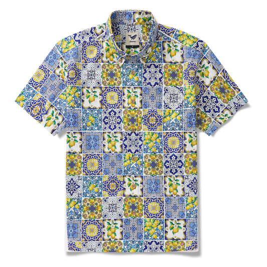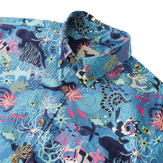 Men's Hawaiian Shirt Short Sleeve Camp Collar 100% Cotton Blue Aloha Mermaid's Skull Island