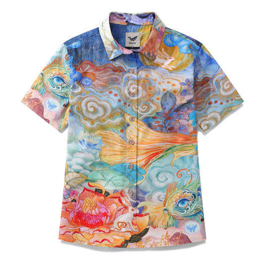 Chemise hawaïenne féminine Tropical tiki charme boutonnée