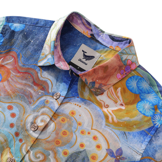 Chemise hawaïenne 100 % coton pour hommes Halloween Cottage Garden par Bienvenido Colorido, chemise Aloha à col camp.