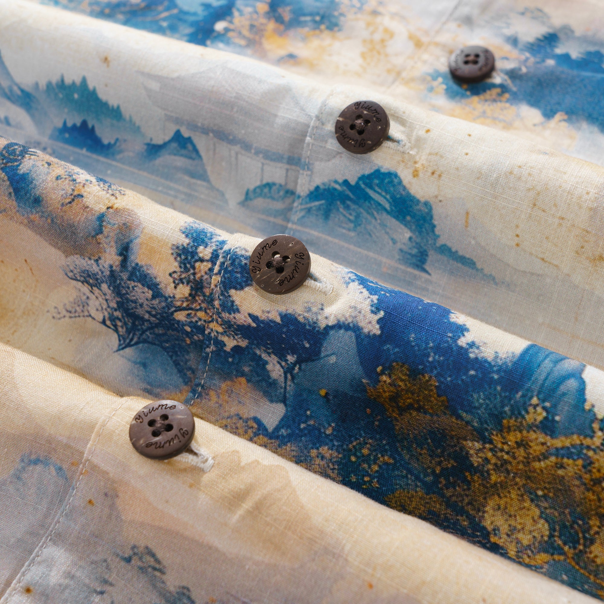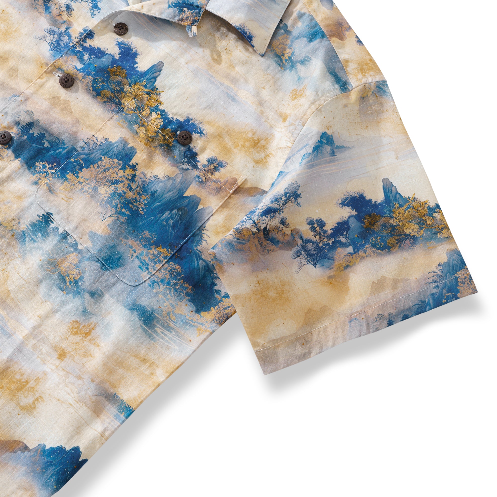 Chemise hawaïenne 100 % coton pour hommes, col camp caché, chemise Aloha Retraite en forêt.