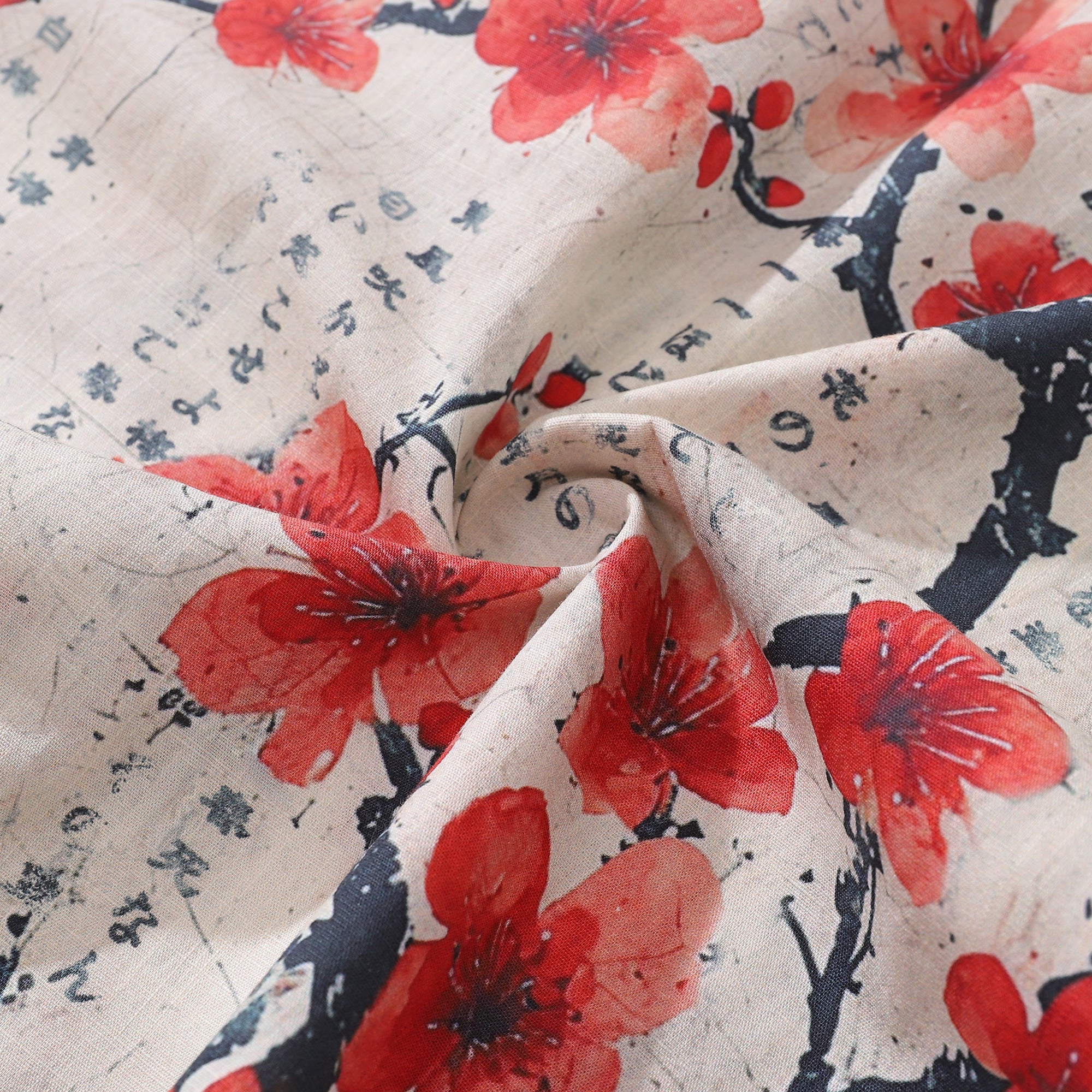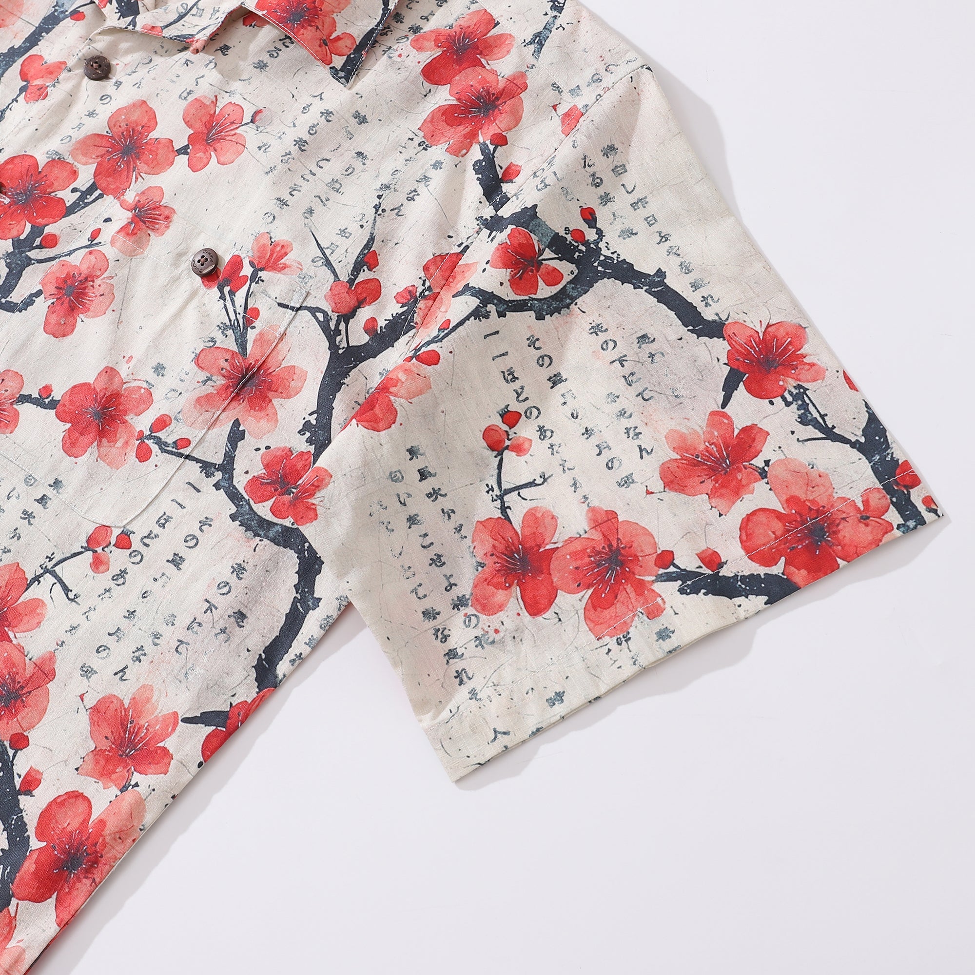 この水彩画は、黒い枝に咲き誇る鮮やかな紅梅の花を描いています。梅の花は繊細で愛らしく、枝は力強くたくましく描かれています。