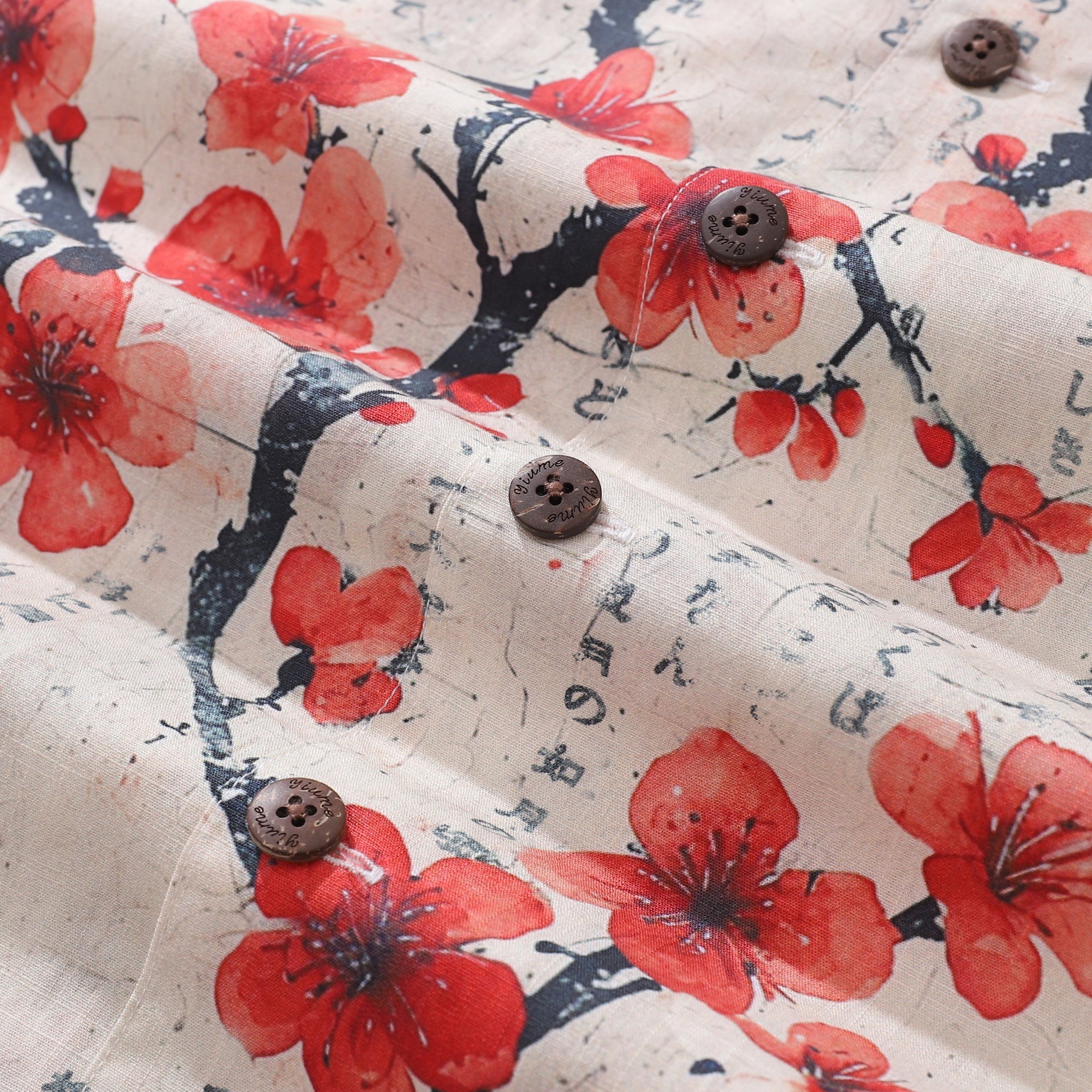 Hokusai inspired Fujiyama Ocean theme blue on white Aloha button down short sleeve shirt was out of its mail box and onto me within an hour! Pictured on me as we visited Christmas Train exhibition Flower Dome Singapore. Shirt is a work of art. Appreciate the spare buttons attached to the laundry instructions tag. Comfortable (although I chose one size too big)