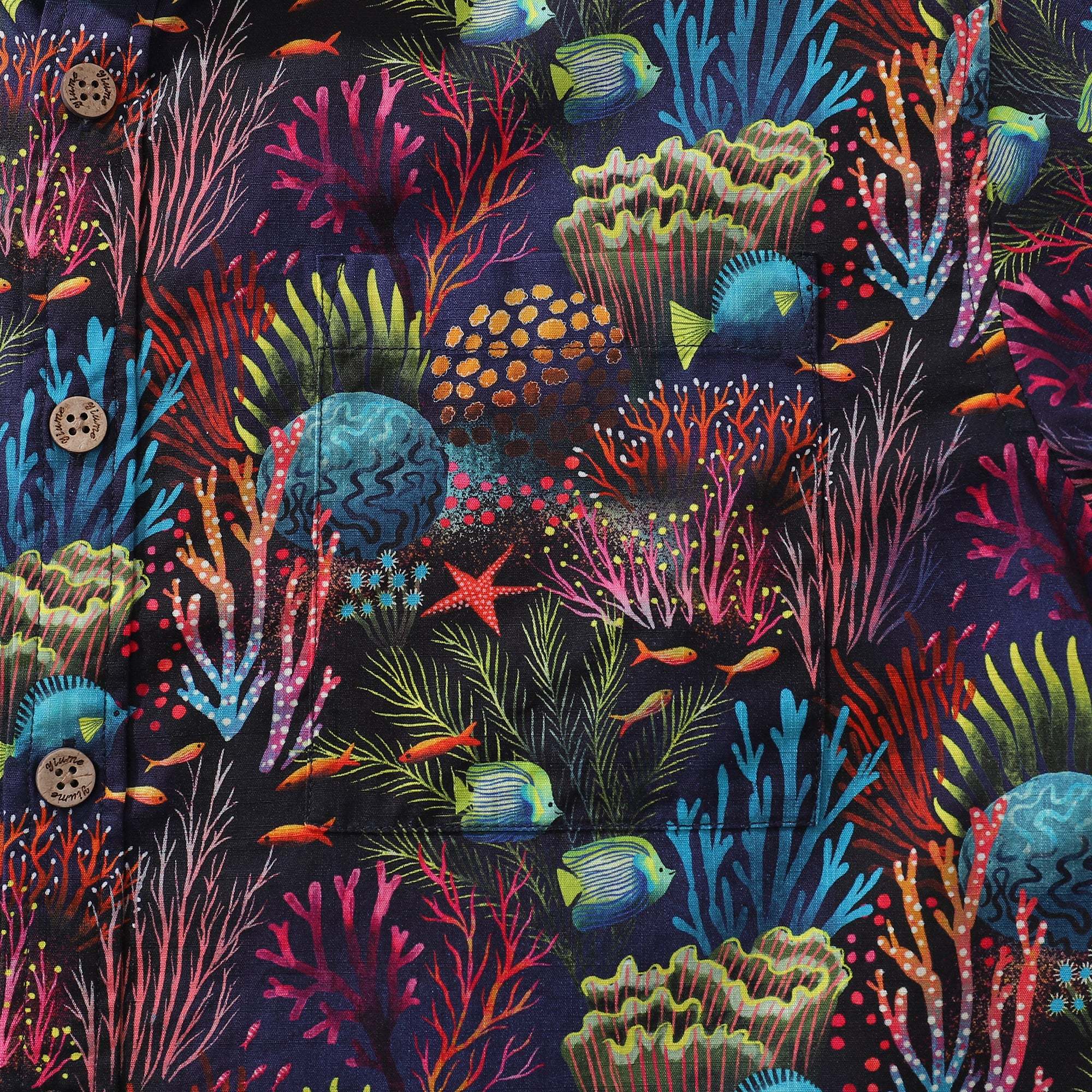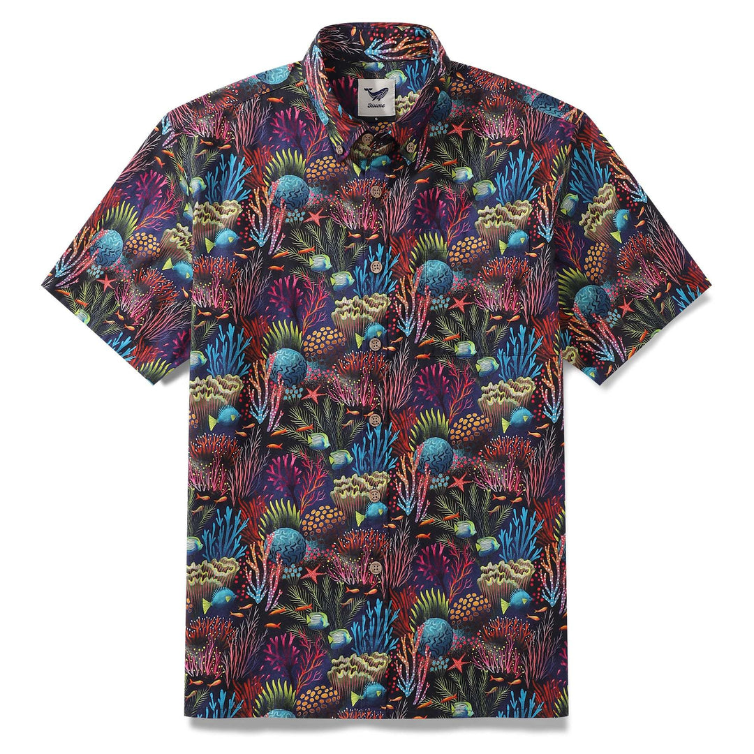 Mens Hawaiian Shirt Magical World Coral Reef Short Sleeve Cotton Beach Shirts For Men