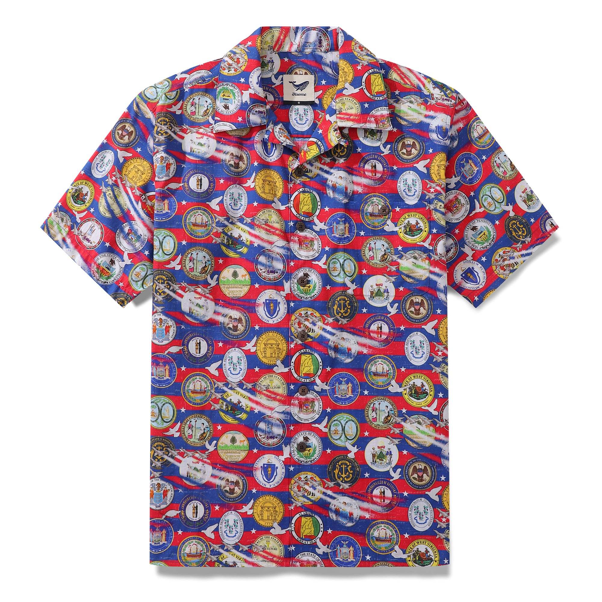 Men's Hawaiian Shirt Short Sleeve Button-down 100% Cotton Green Aloha Verdant Bloomscape