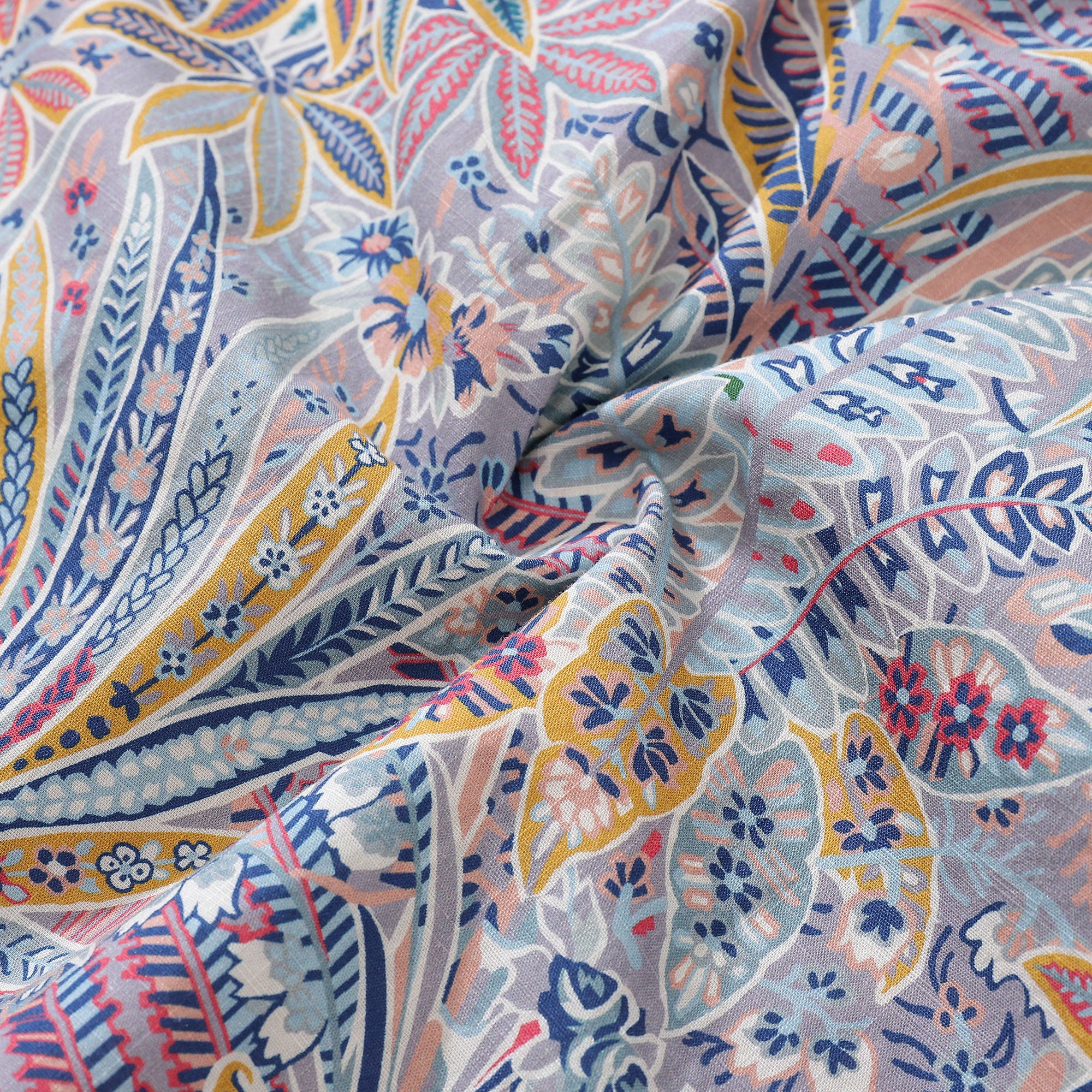 Tropical palm trees, feathery leaves and graceful ferns, intricately drawn details to achieve rich color depth.