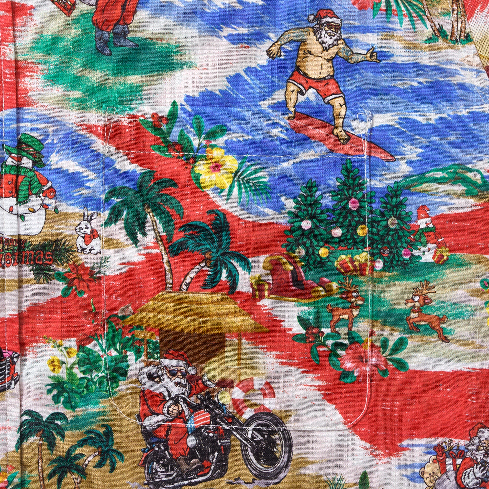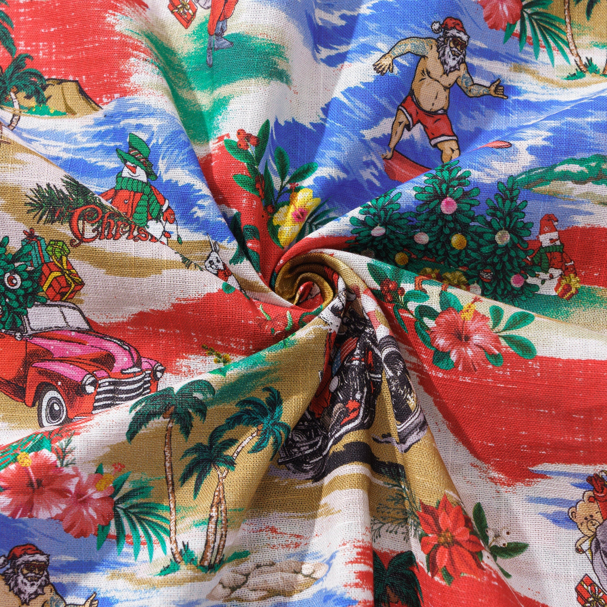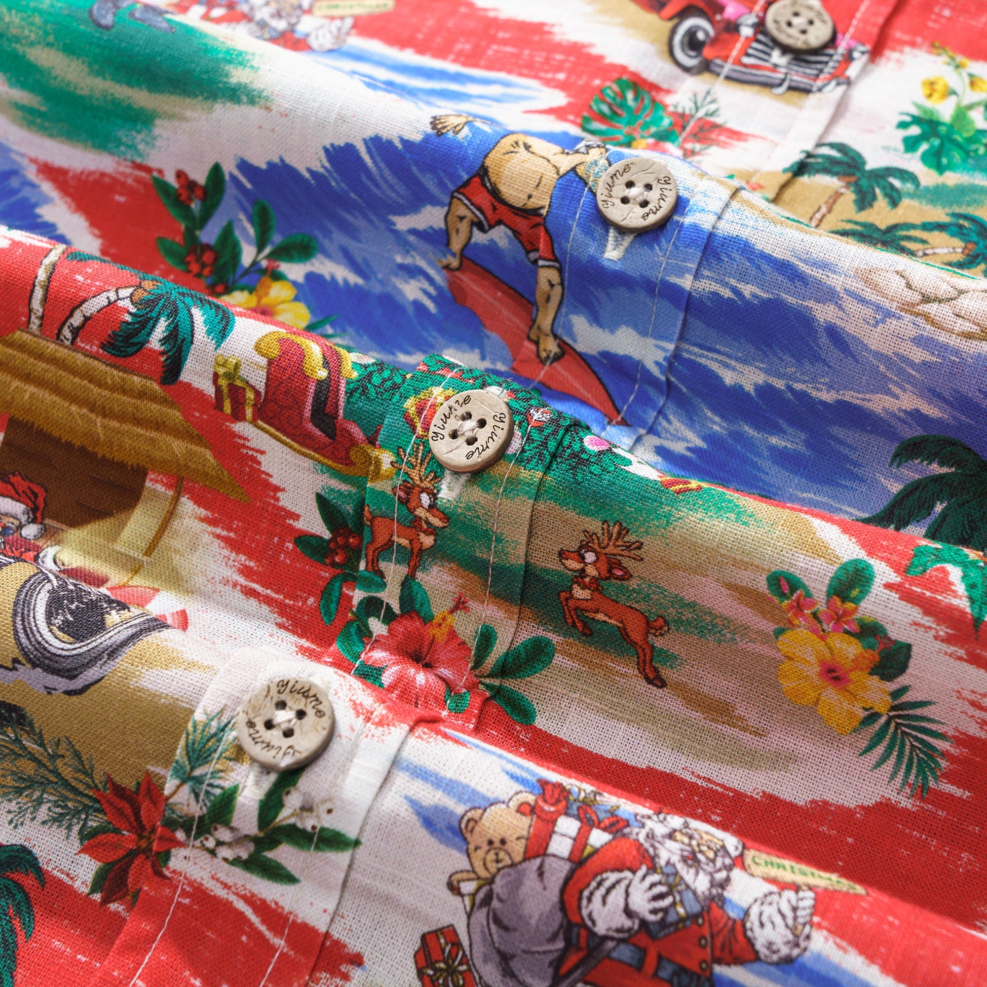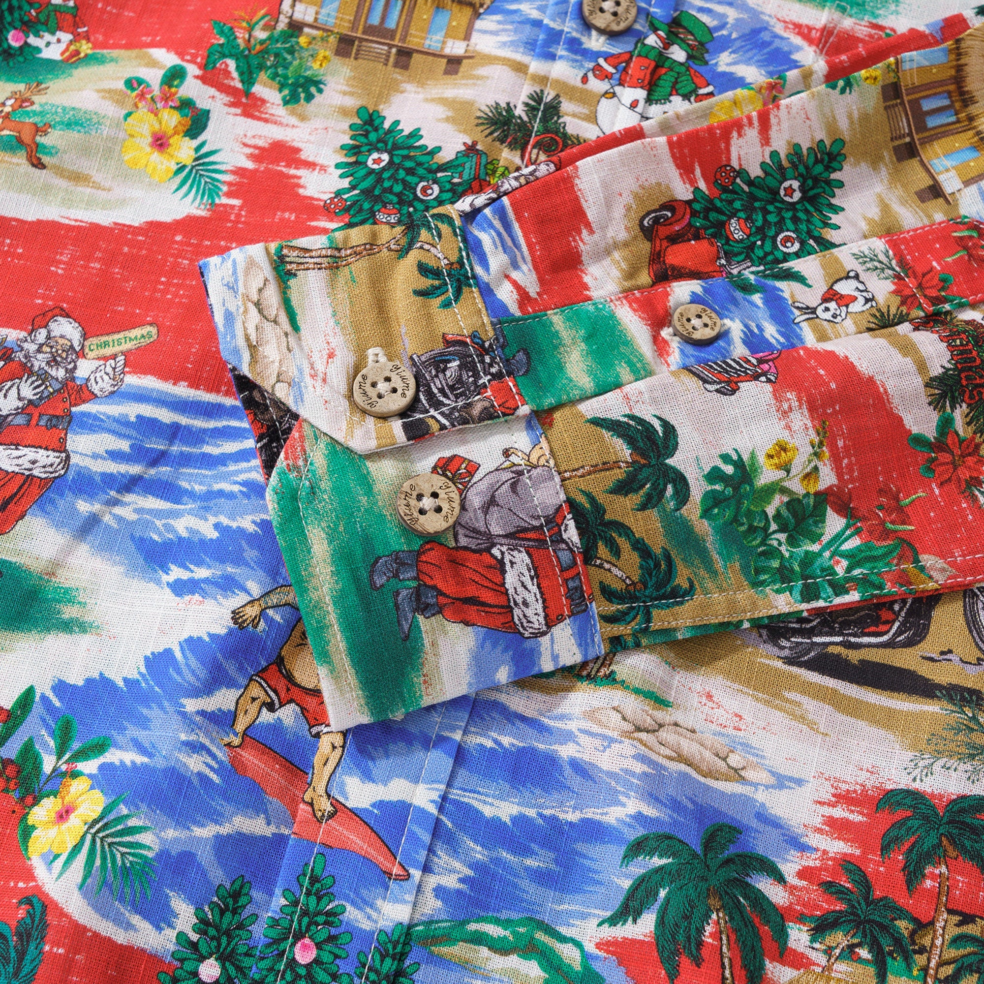 Christmas Long Sleeve Hawaiian Shirt For Men Santa Claus on a Harley 100% Cotton Button-down Aloha Shirt