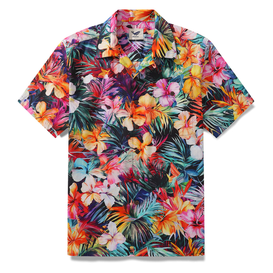 Tropical Hawaiian Shirt For Men Floral Print Shirt 100% Cotton Camp Collar Aloha Shirt