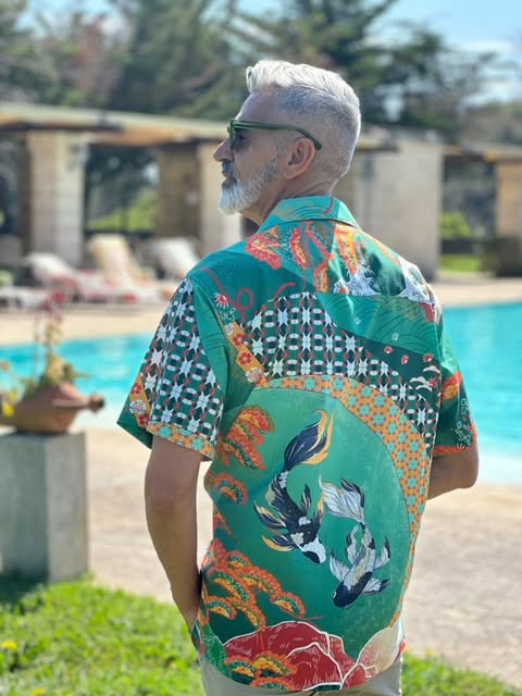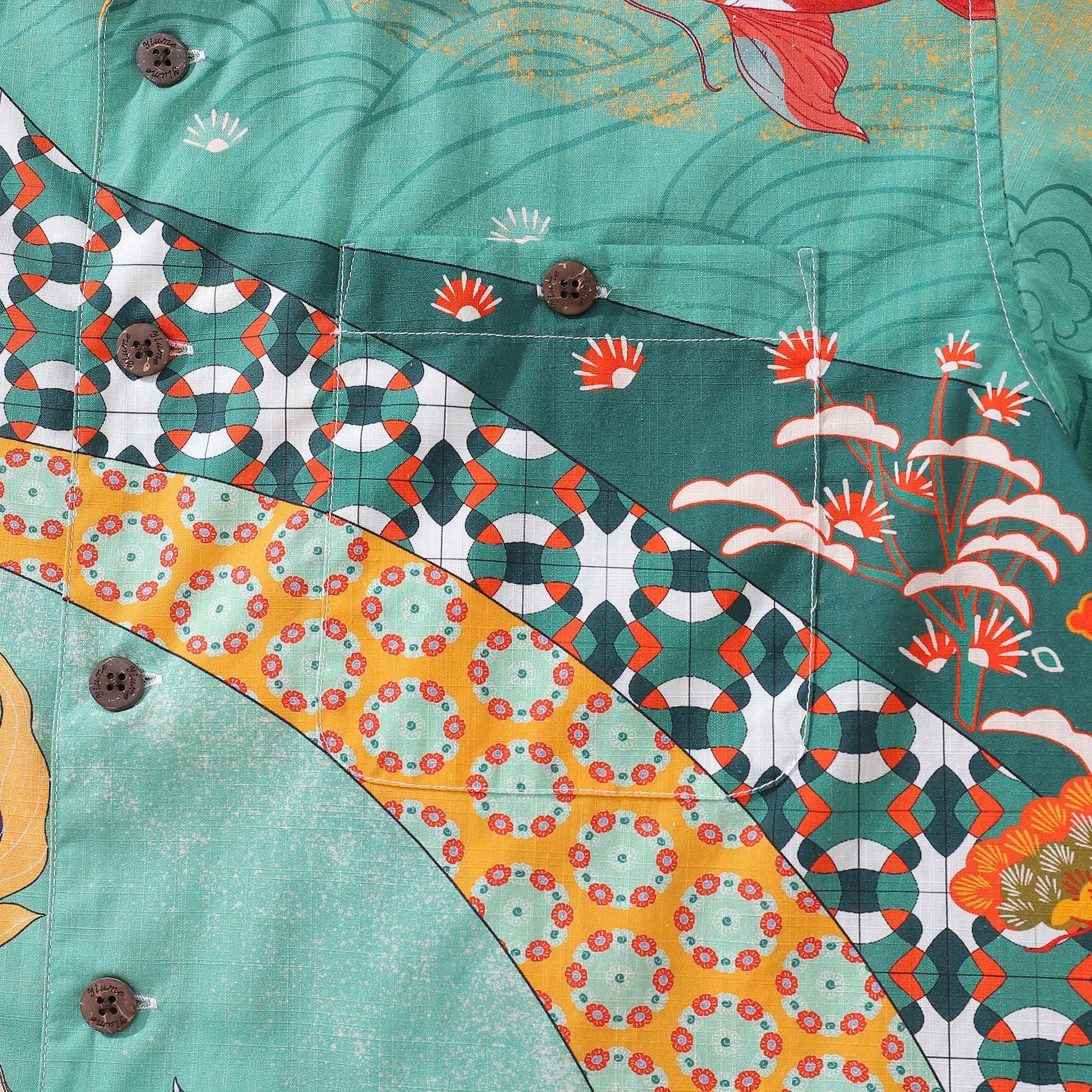 Green Hawaiian Shirt For Men Dancing gracefully Fish Shirt 100% Cotton