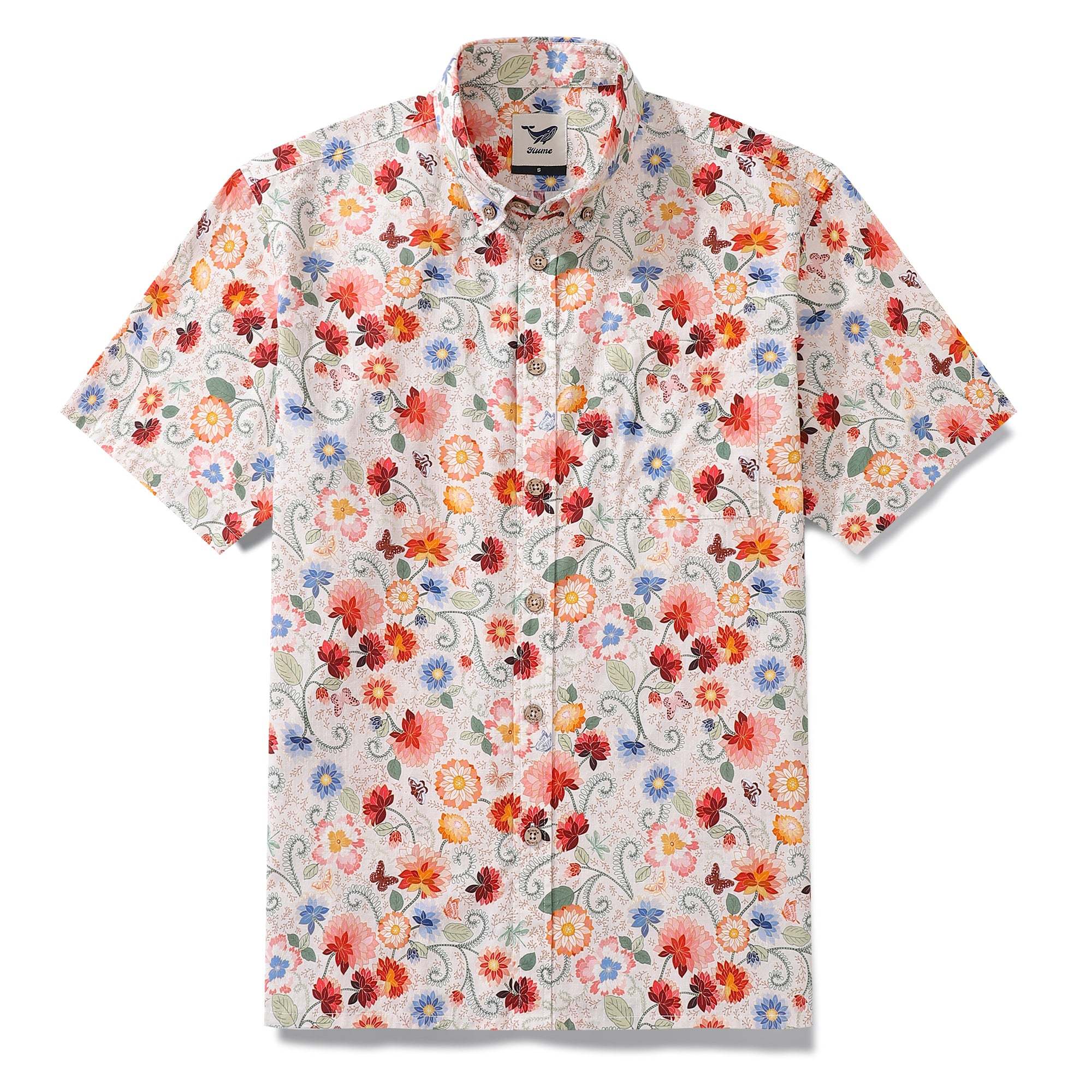 Yiume Hawaiian Shirt For Men 1960s Vintage Flower Shirt Button-down Short Sleeve Aloha Shirt Garden Of Color By Annick