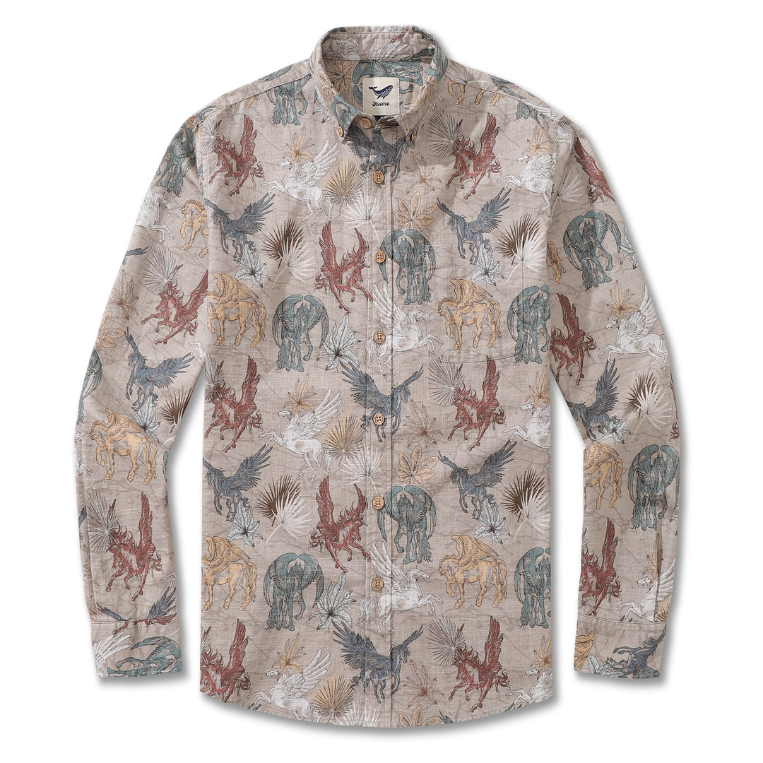 Men's Hawaiian Shirt Pegasus in Flight Cotton Button-down Long Sleeve Aloha Shirt