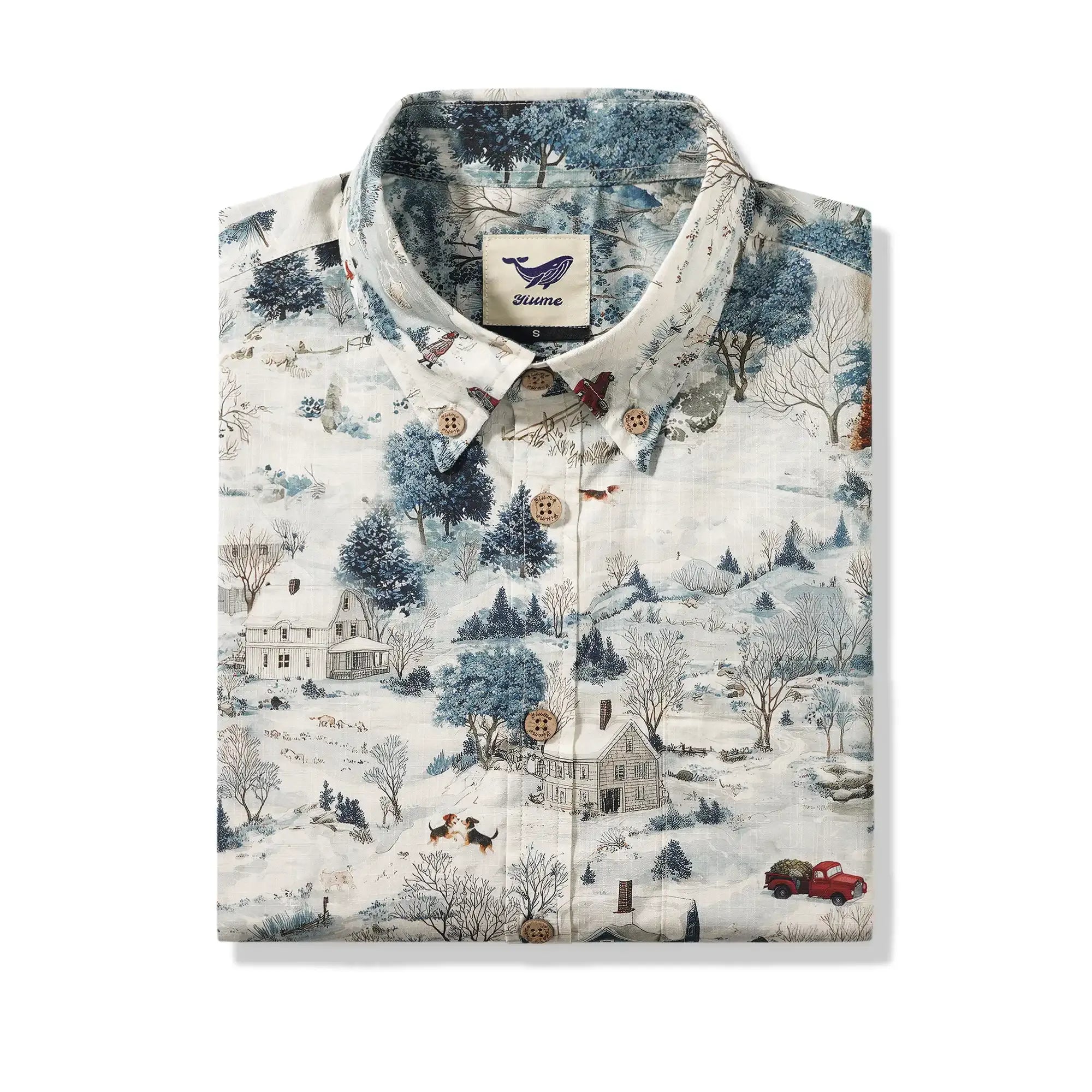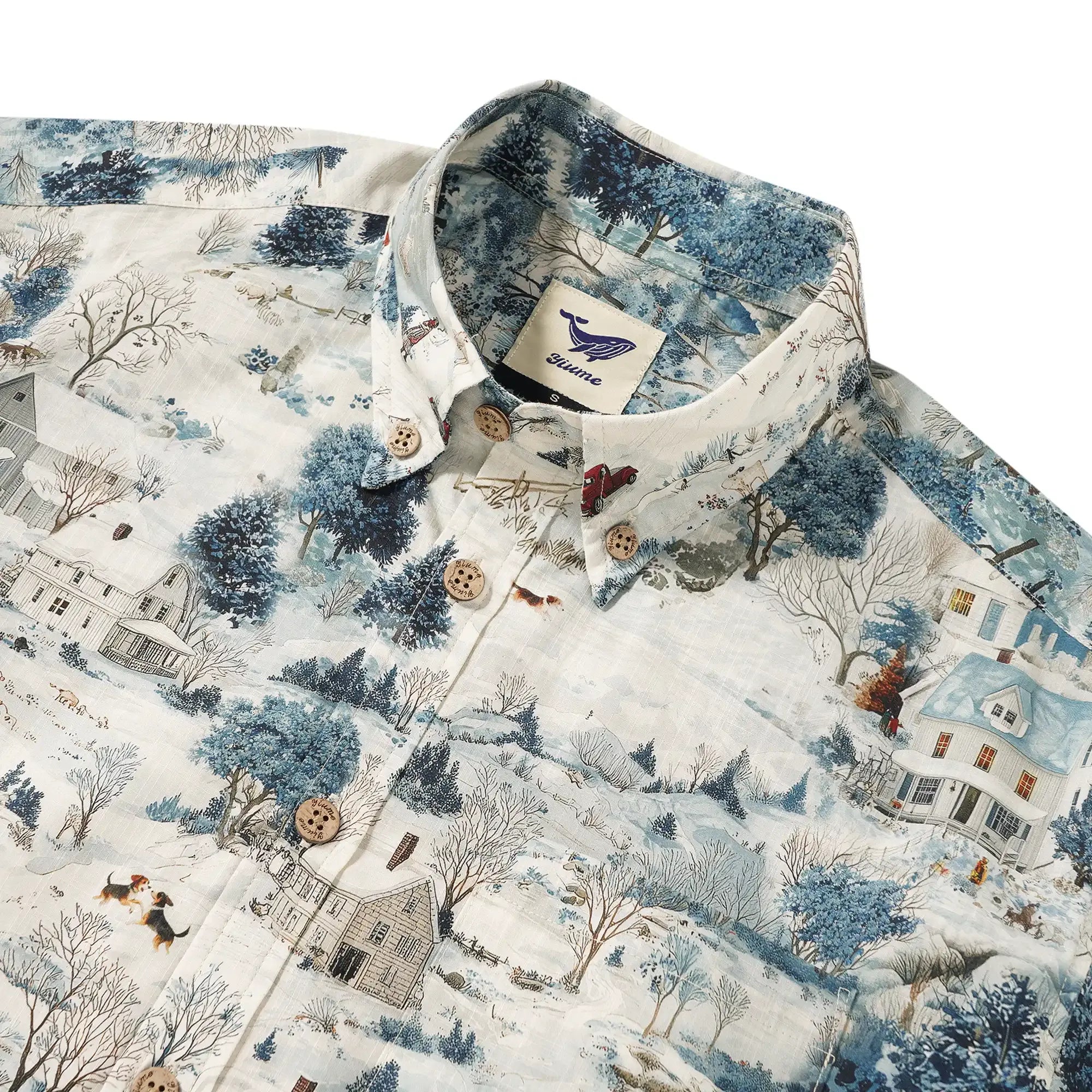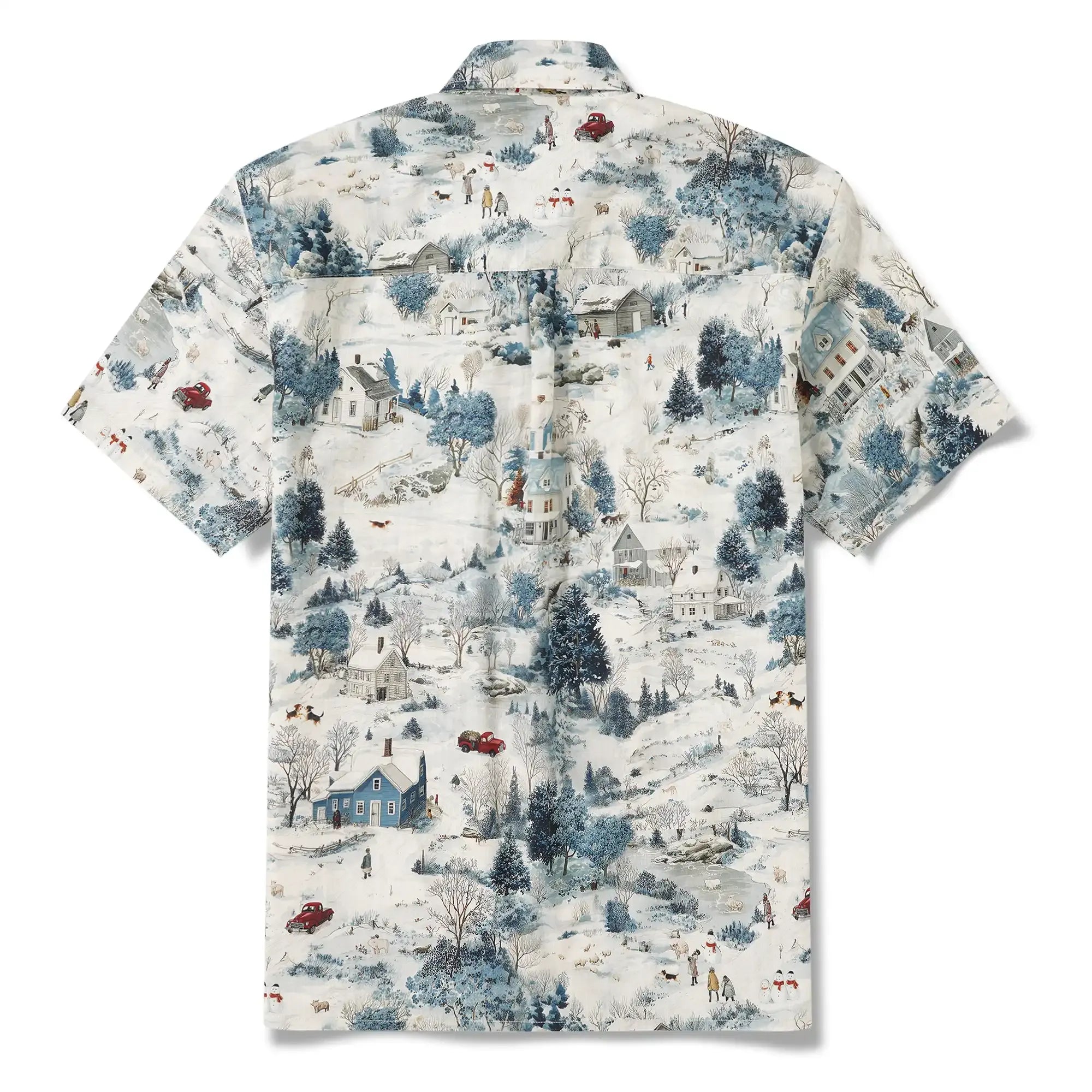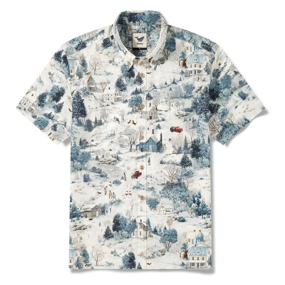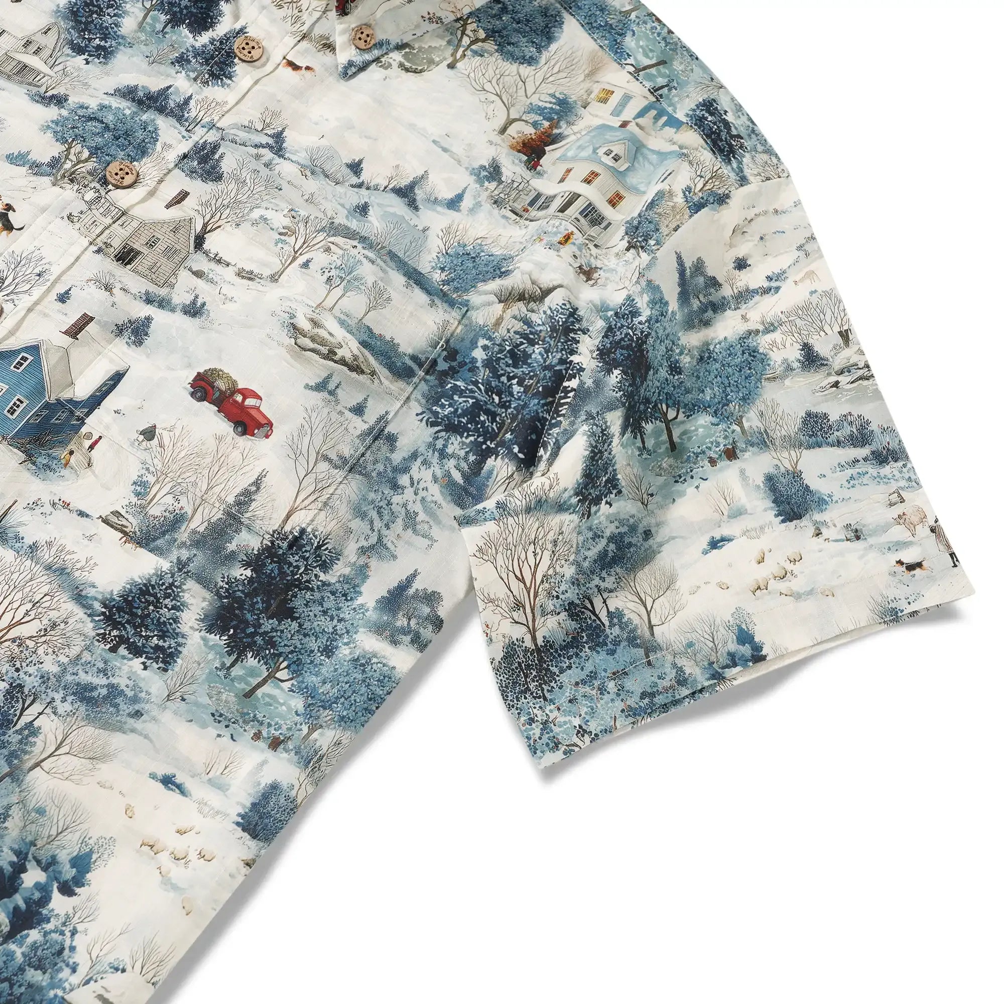 Men's Hawaiian Shirt Short Sleeve Button-down 100% Cotton Blue Aloha Snowy Countryside Chronicles