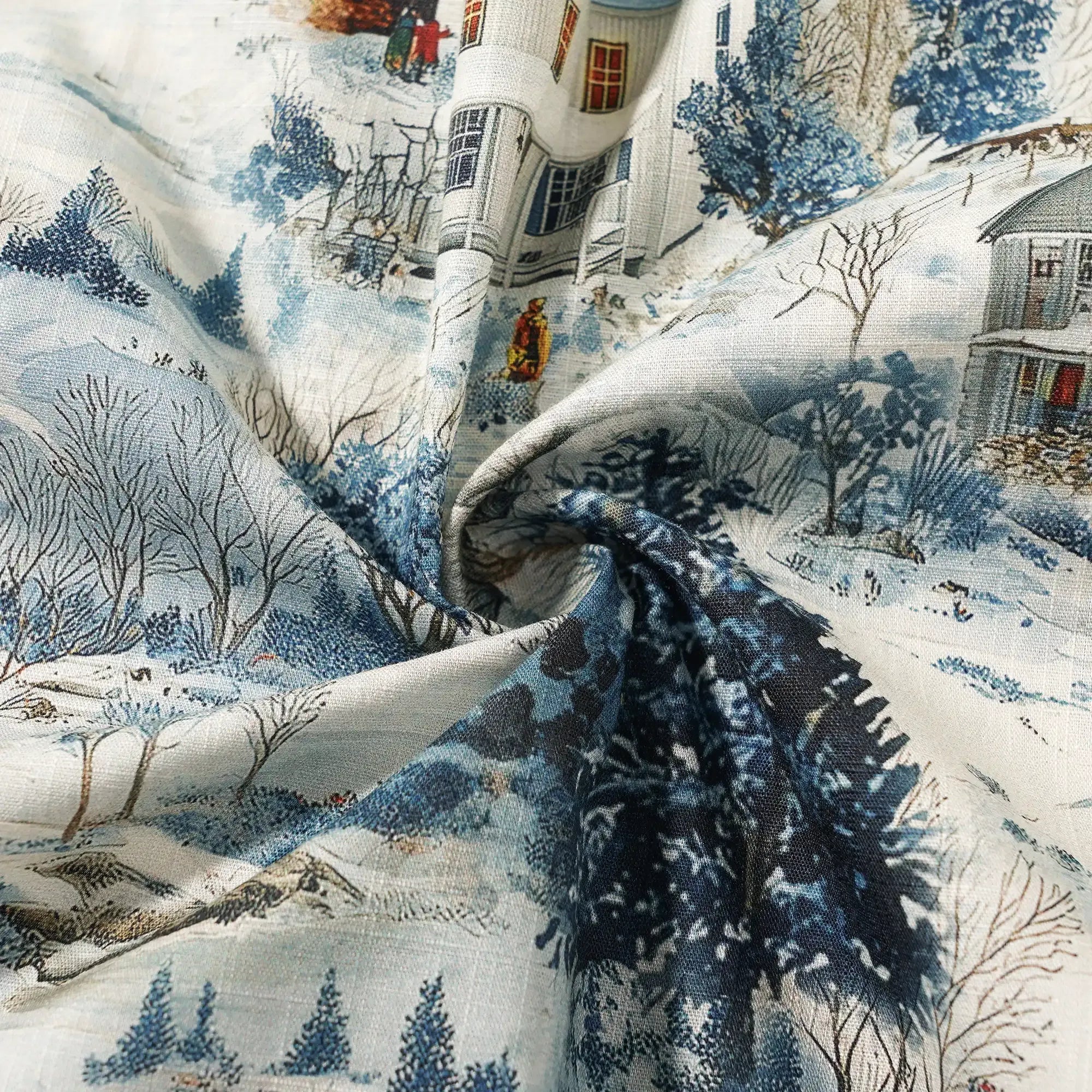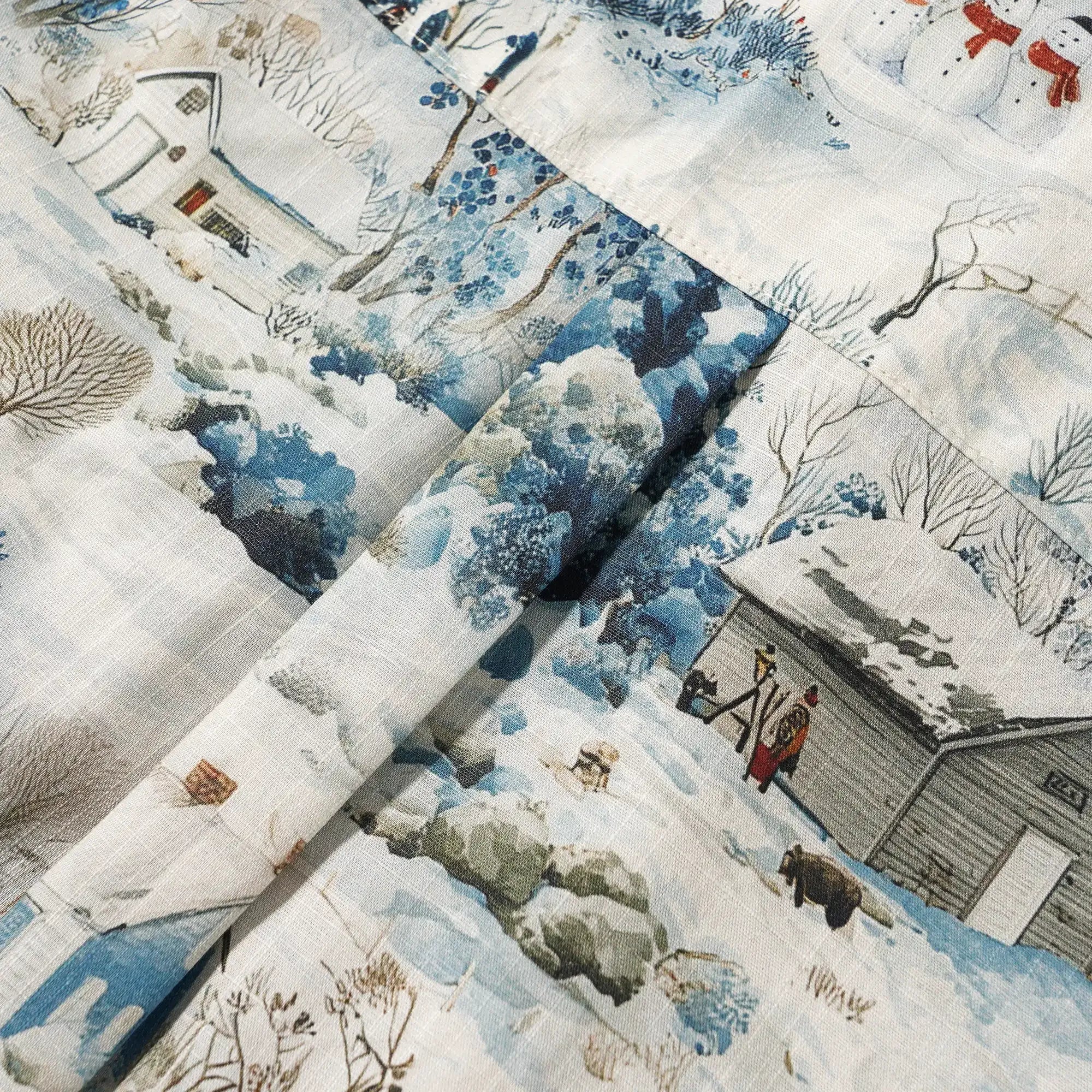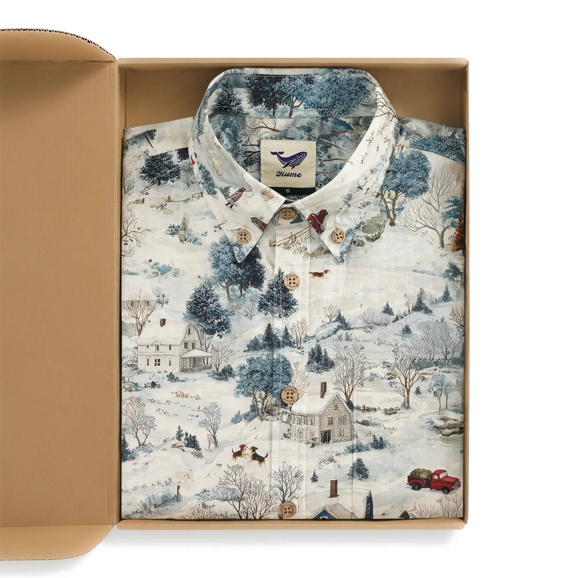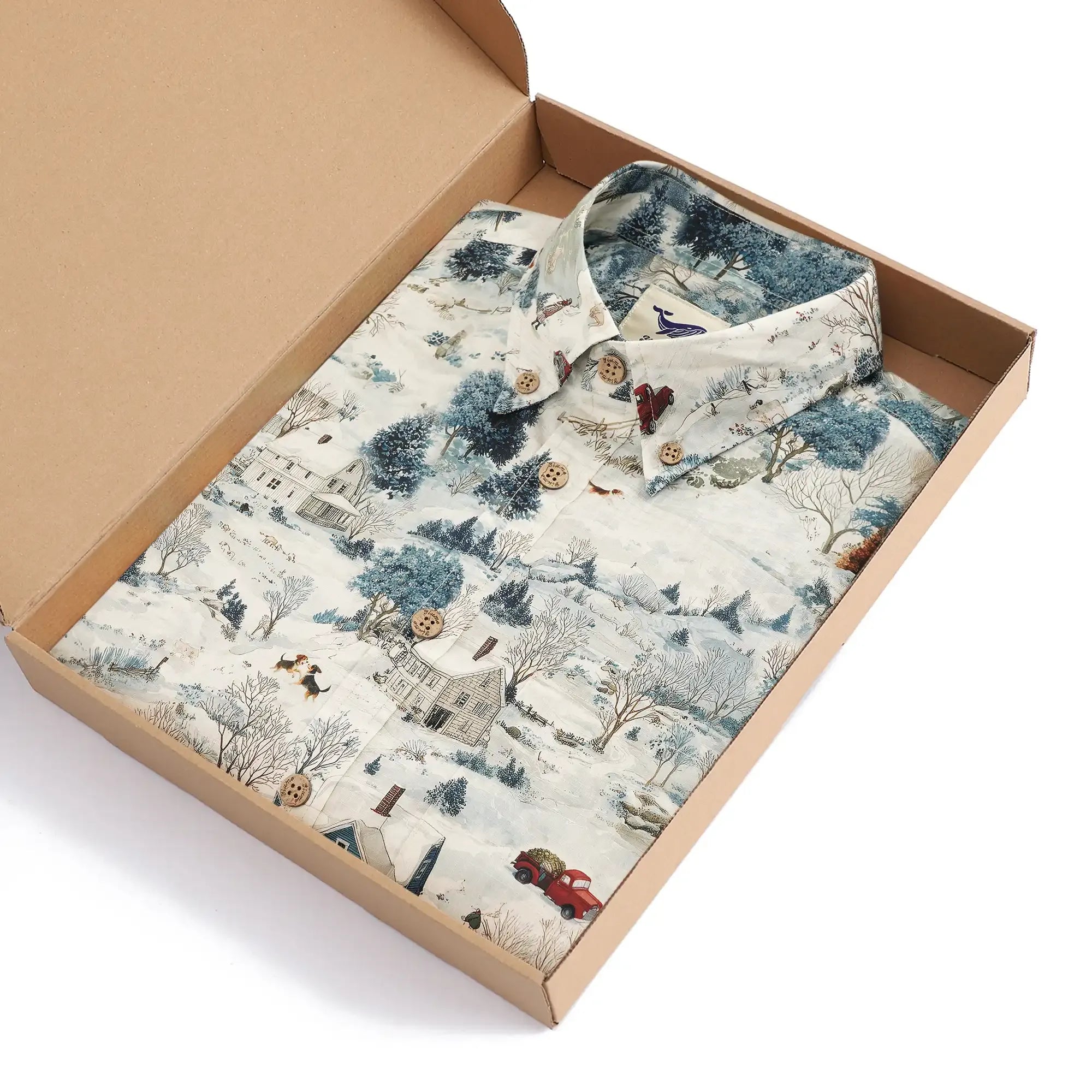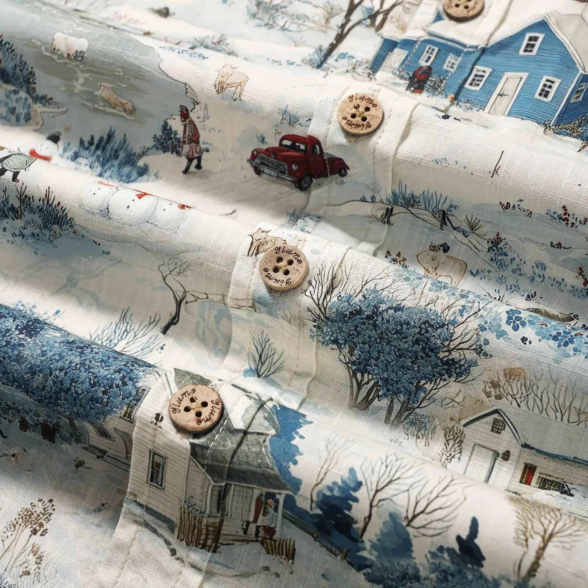 Men's Hawaiian Shirt Short Sleeve Button-down 100% Cotton Blue Aloha Snowy Countryside Chronicles
