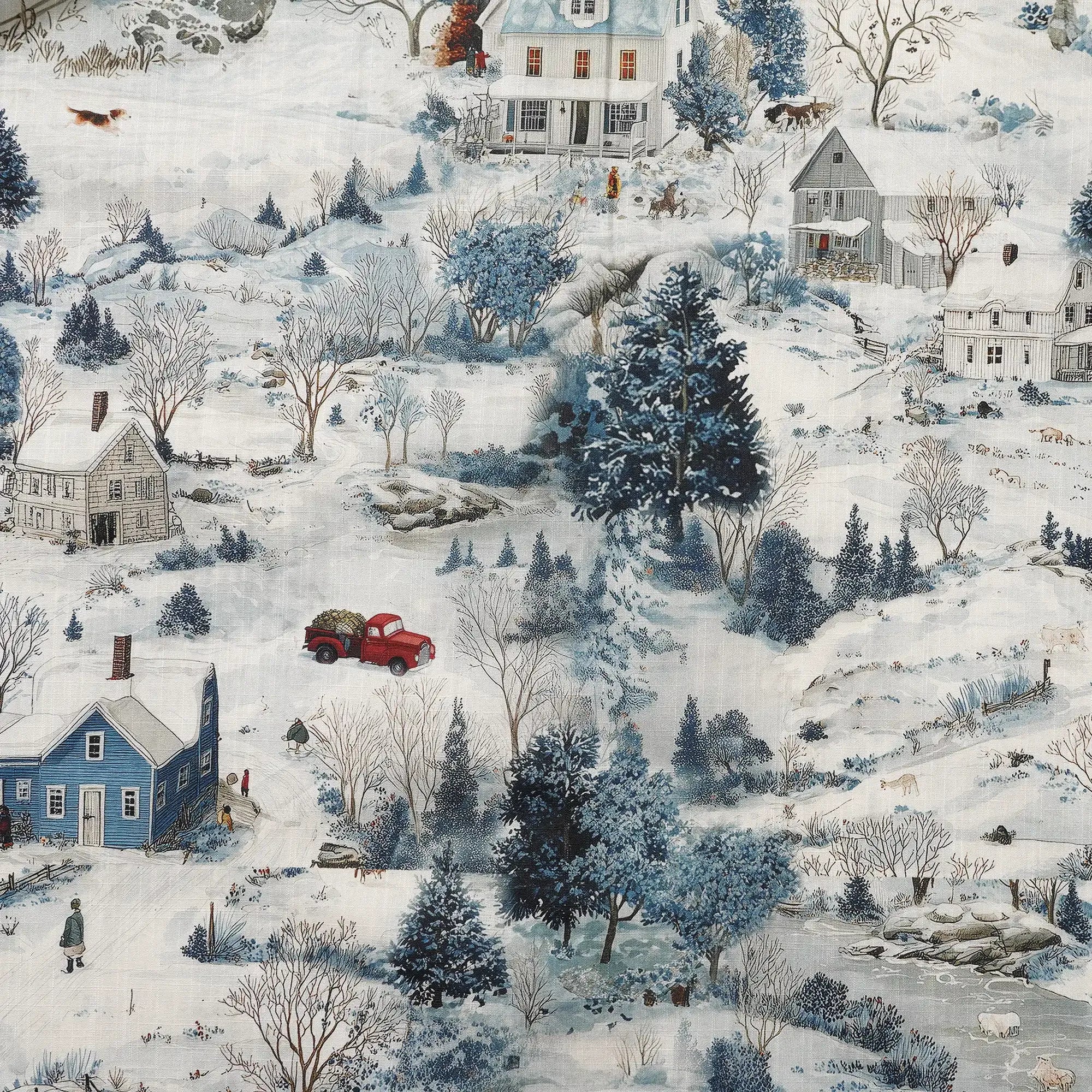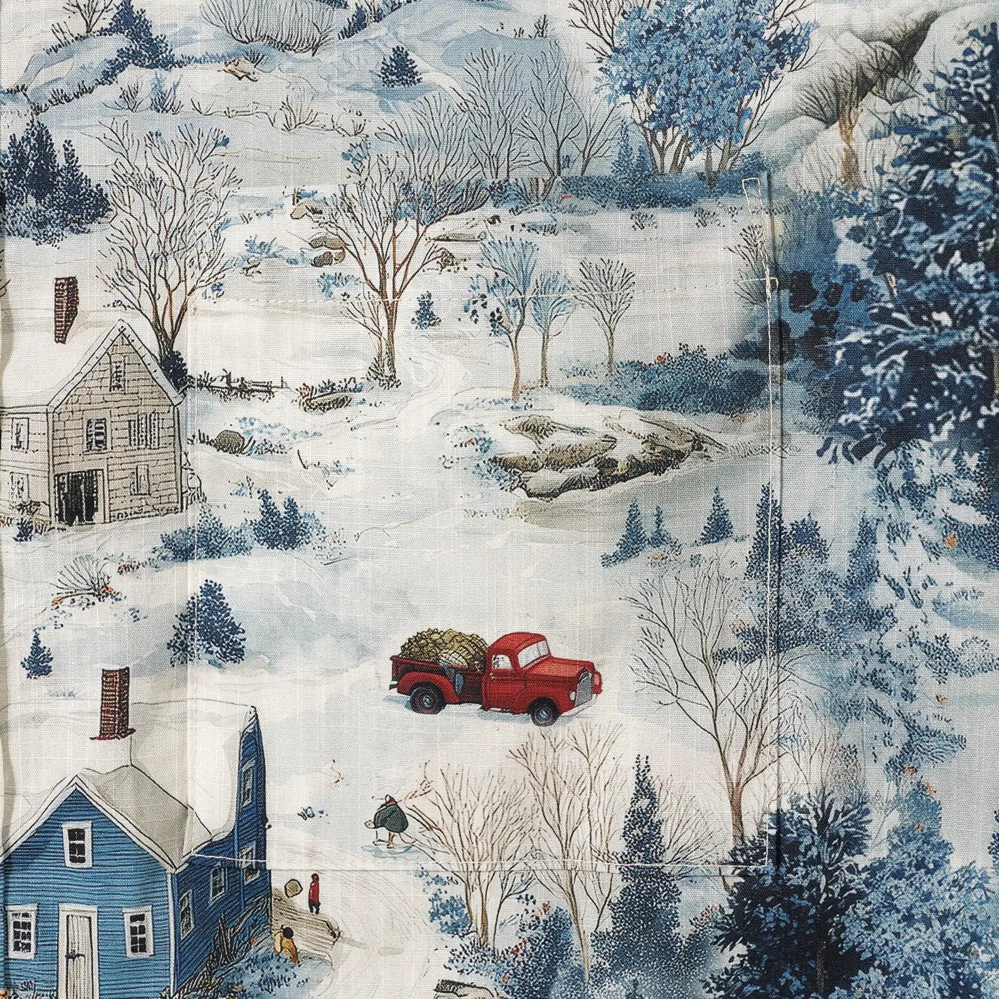 Embrace the nostalgia of rural winter with this art piece. Each snowflake whispers tales of cozy farmhouses, vintage red trucks on snowy roads, and families crafting snowmen. Picture playful dogs bounding through the powder, while evergreen trees and bare branches frame a serene scene of grazing sheep and friendly chitchats. Transport yourself to a New England town veiled in snow, where winter embodies community, tradition, and pure simplicity.