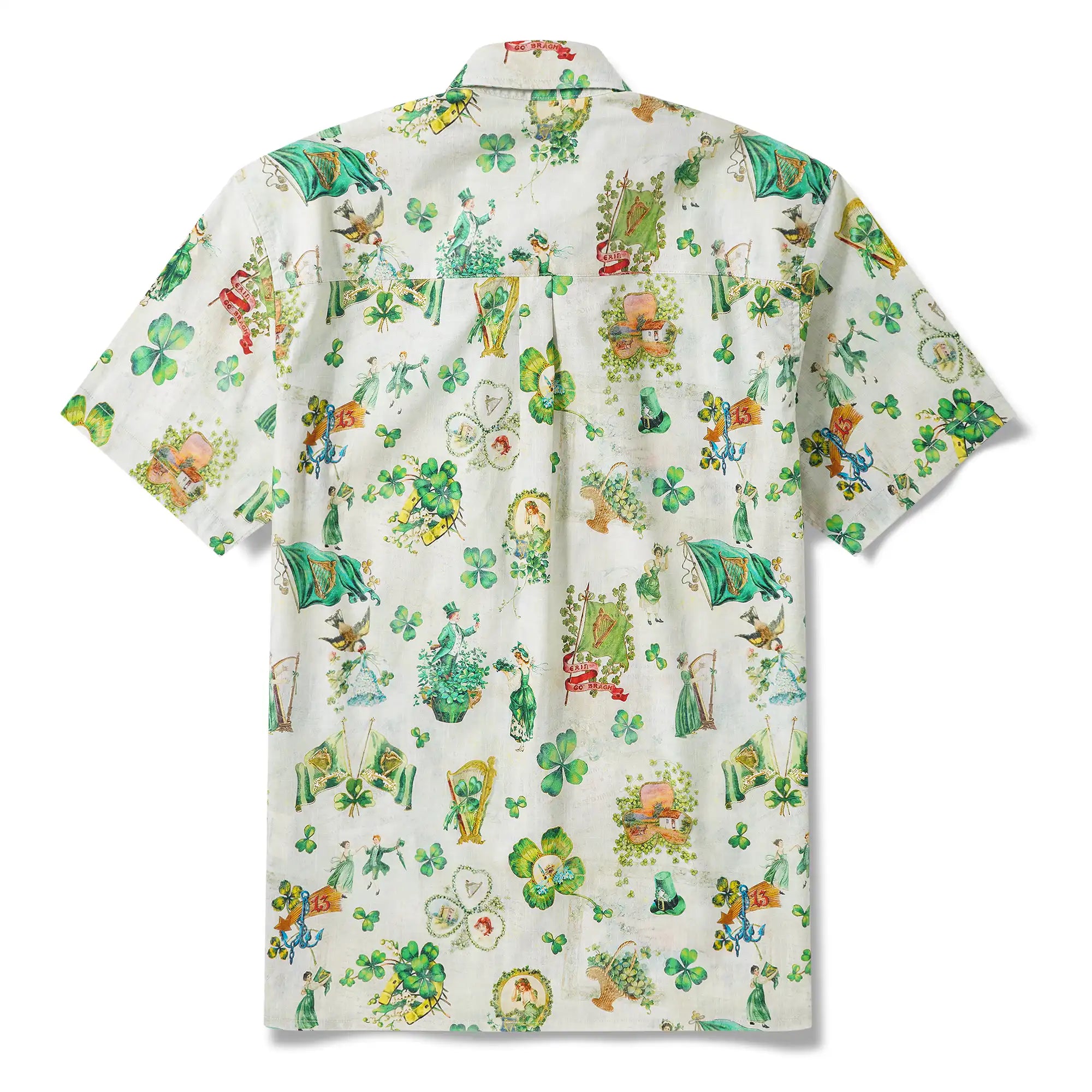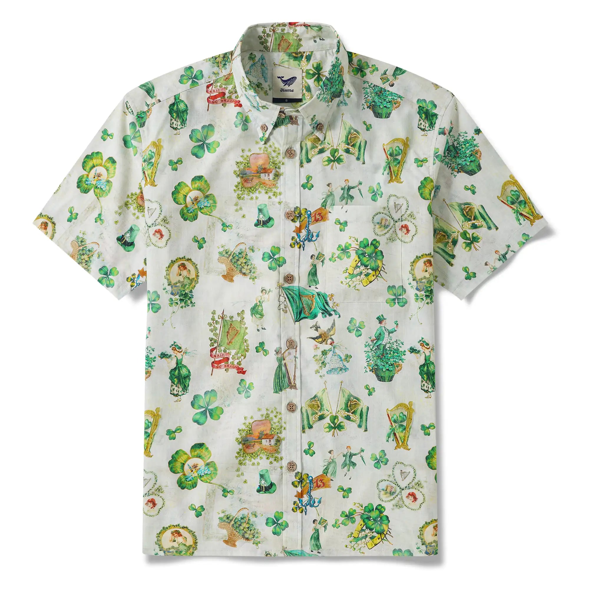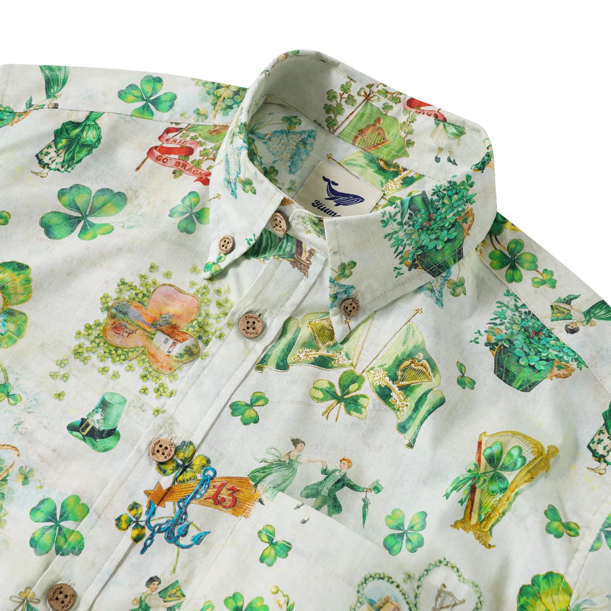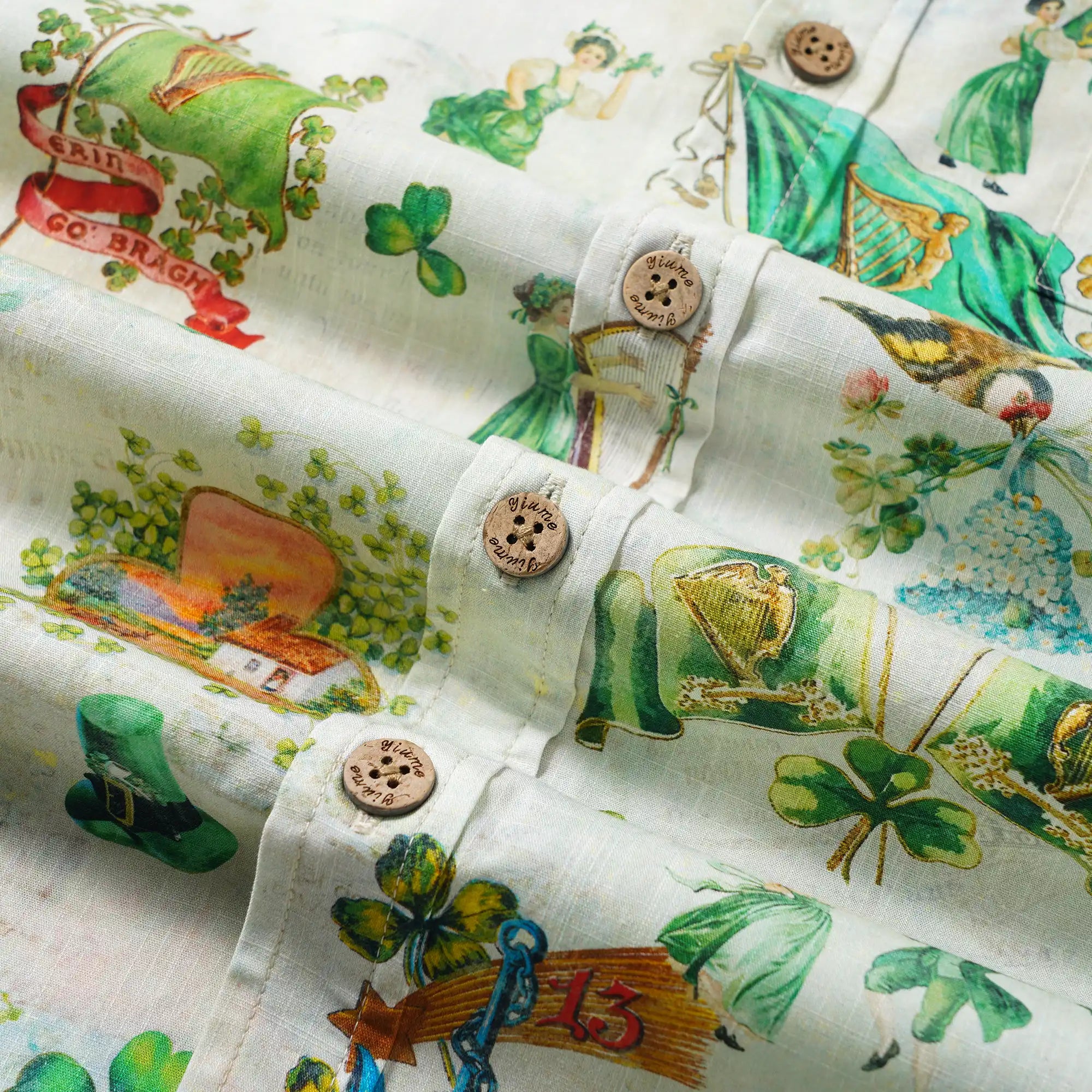 St. Patrick's Day Men's Hawaiian Shirt Short Sleeve Button-down 100% Cotton Green Aloha A Vintage Journey