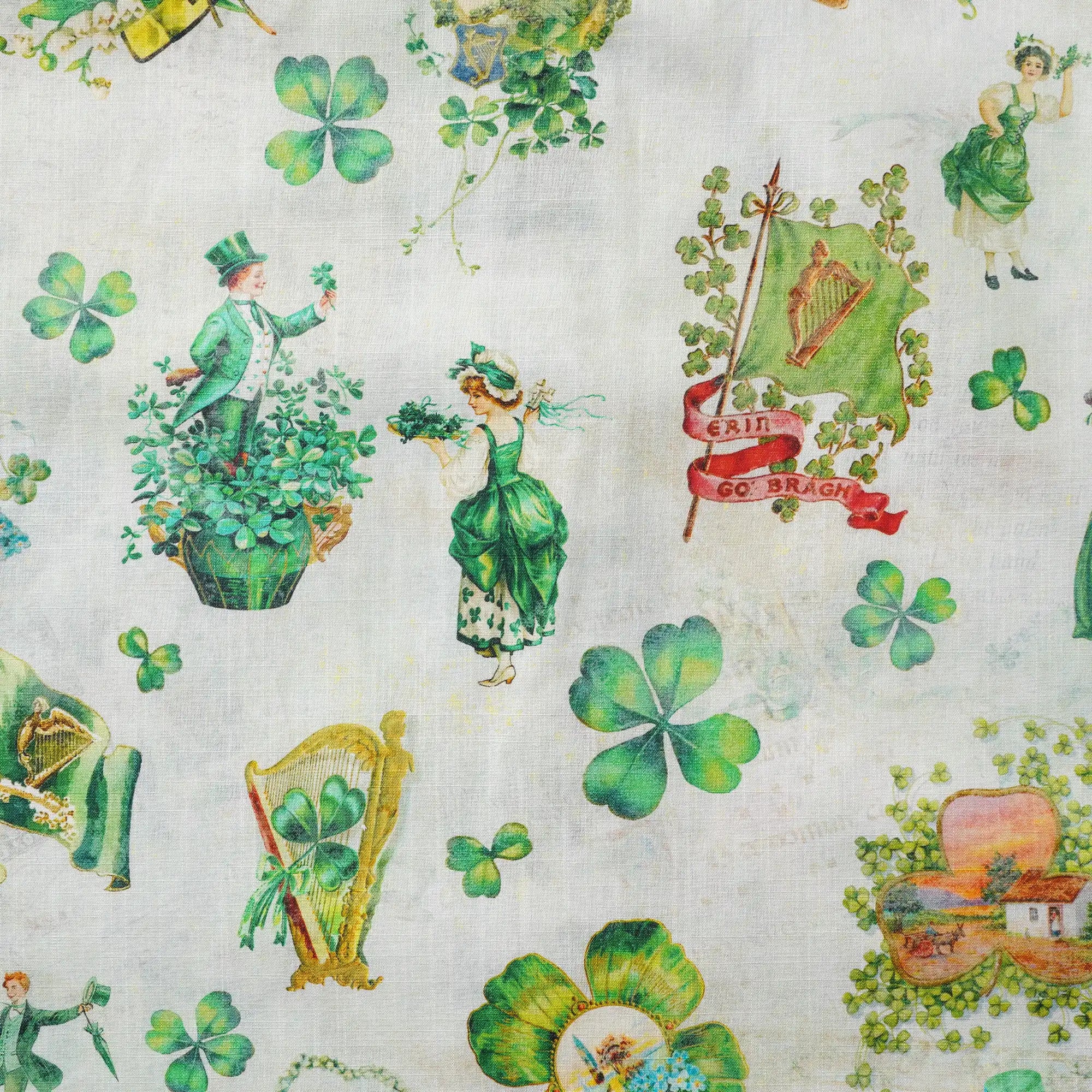 Transport yourself to the nostalgic charm of St. Patrick's Day with our vintage-inspired shirt. Crafted on rustic paper, it features lush clovers, elegant harps, and figures in retro attire, capturing the festive spirit of bygone celebrations. Adorned with retro flags and hats, each element exudes a time-worn allure, embodying the rich heritage and unique culture of the holiday. Slip into this shirt and relive the retro magic and joyous ambiance of St. Patrick's Day festivities.