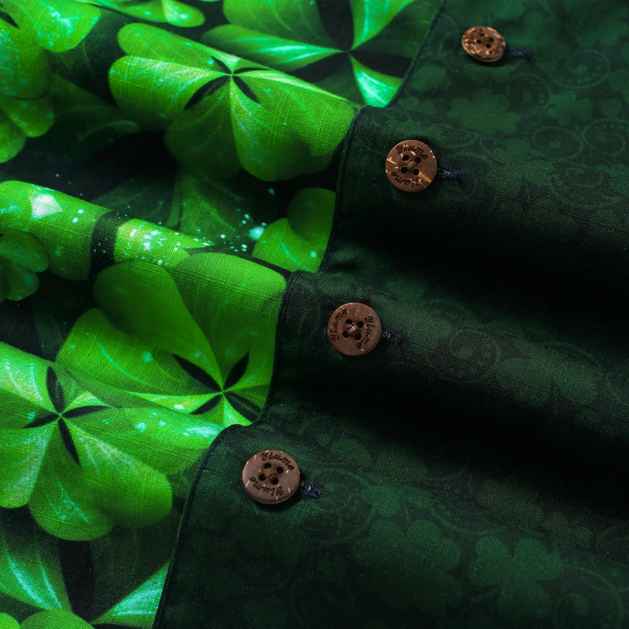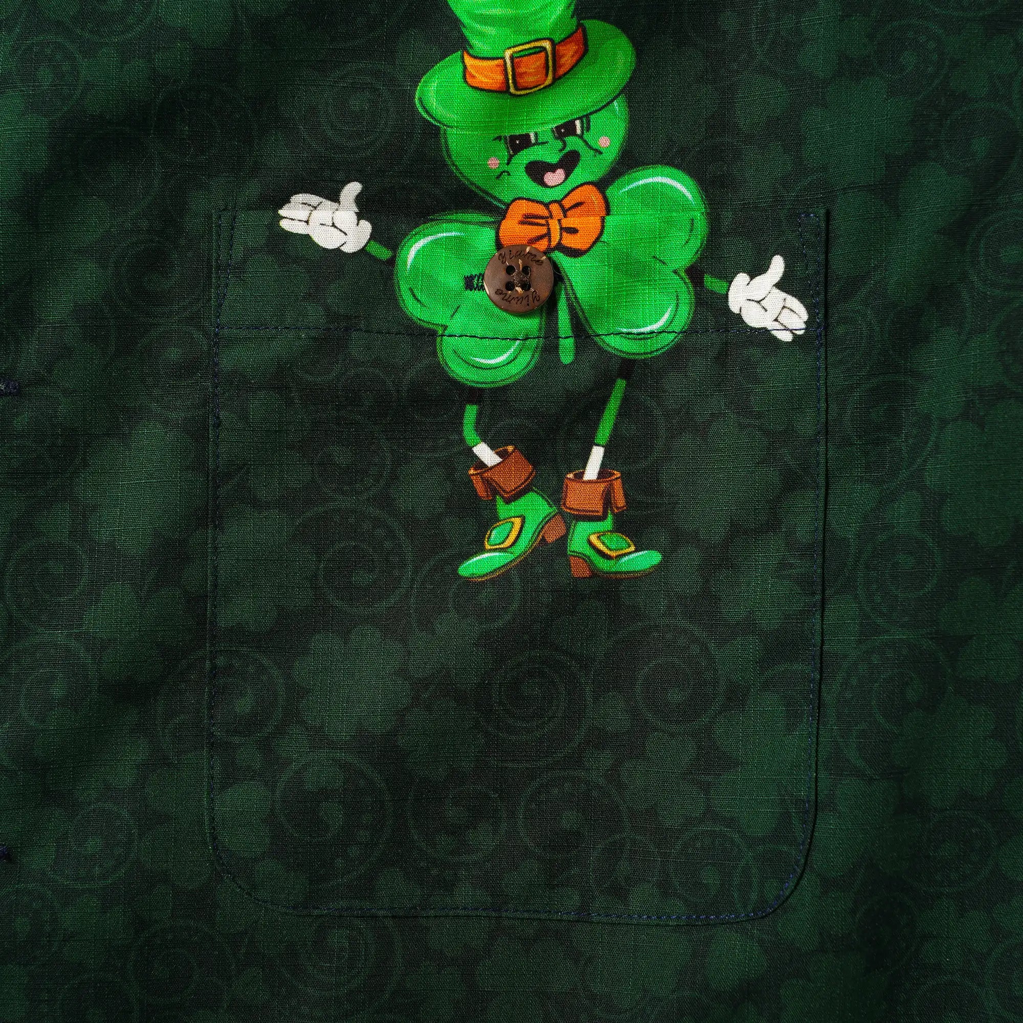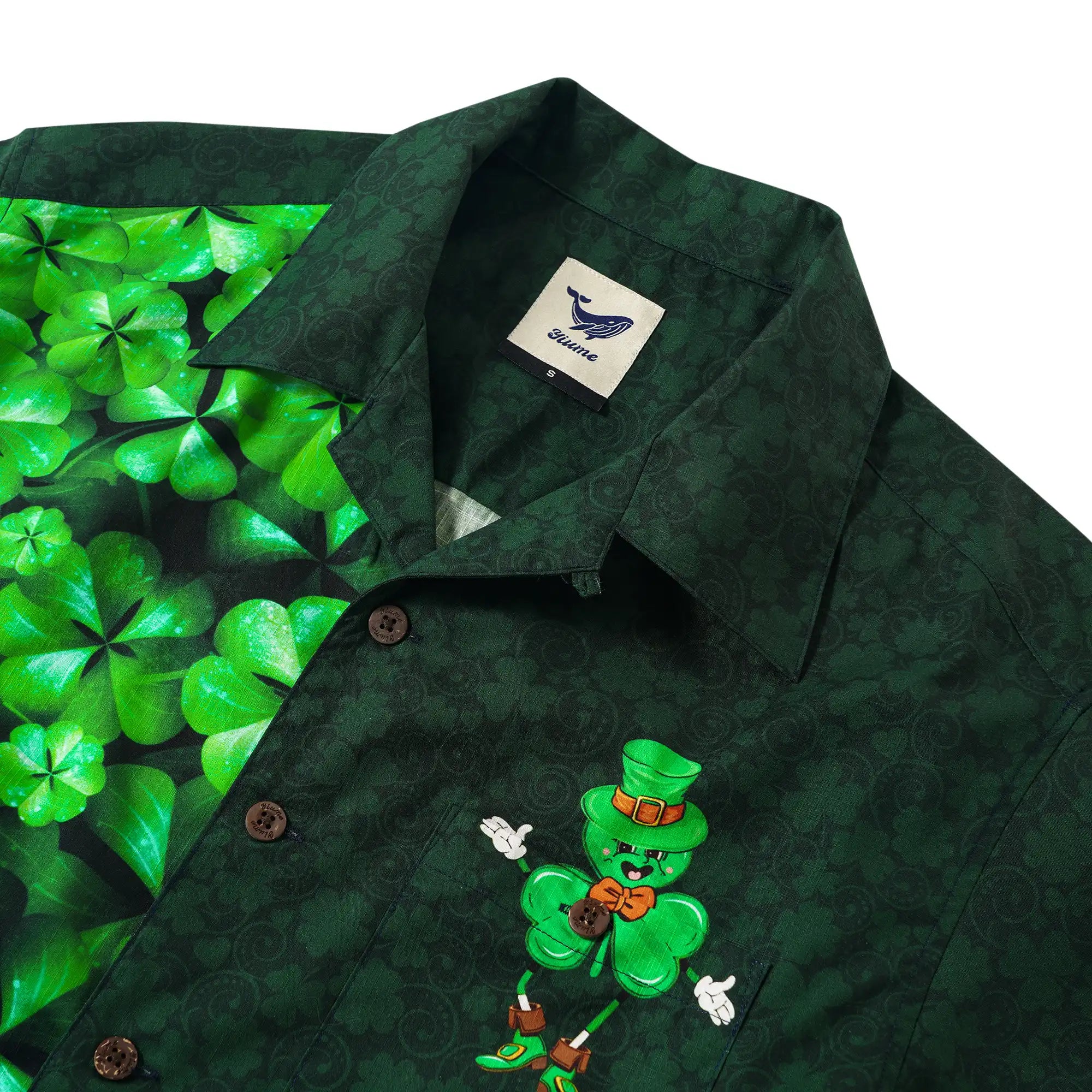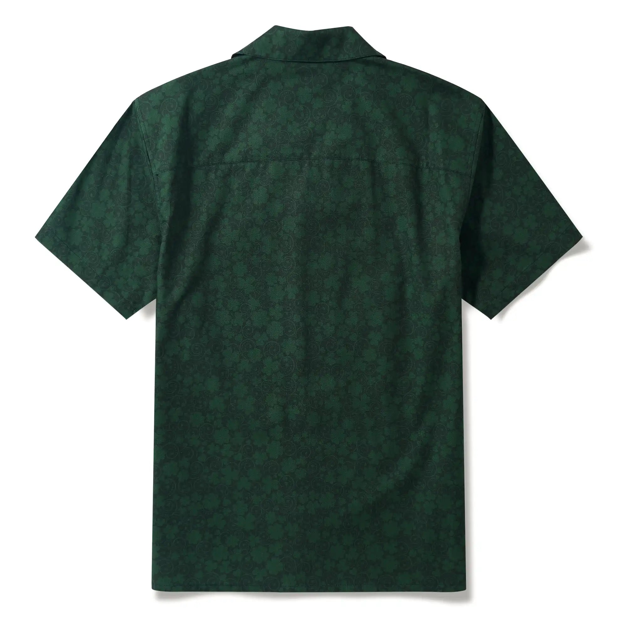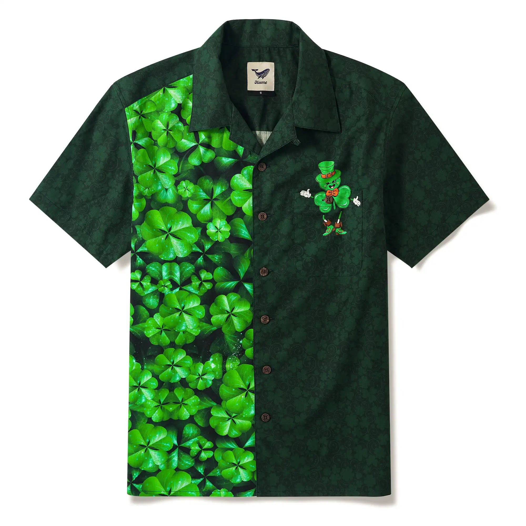 St. Patrick's Day Men's Hawaiian Shirt Short Sleeve Camp Collar 100% Cotton Green Aloha Lucky Clover Mascot