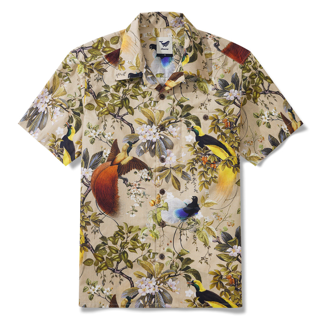 Men's Hawaiian Shirt Short Sleeve Camp Collar 100% Cotton Beige Aloha Shirt